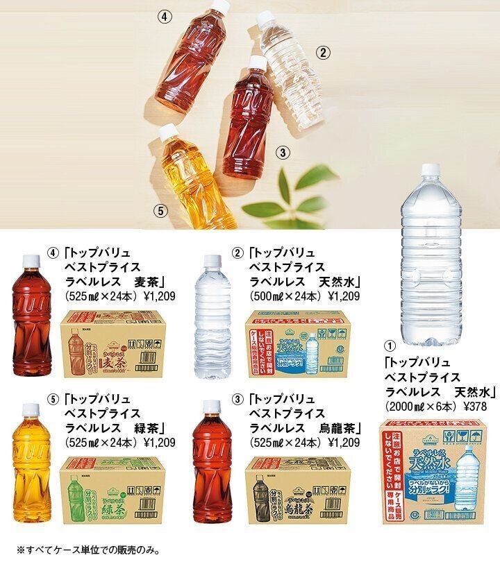 ラベルレス商品なら、プラスチックごみの削減につながることはもちろん、捨てるときのラベルをはがす手間が省けるのもうれしい♪ また、ケース販売となっているので、いざというときのための備蓄として、ストックしておくのもおすすめです。