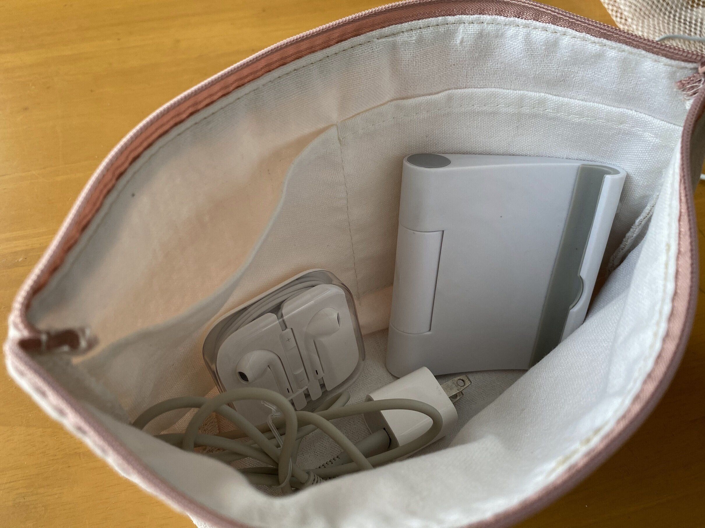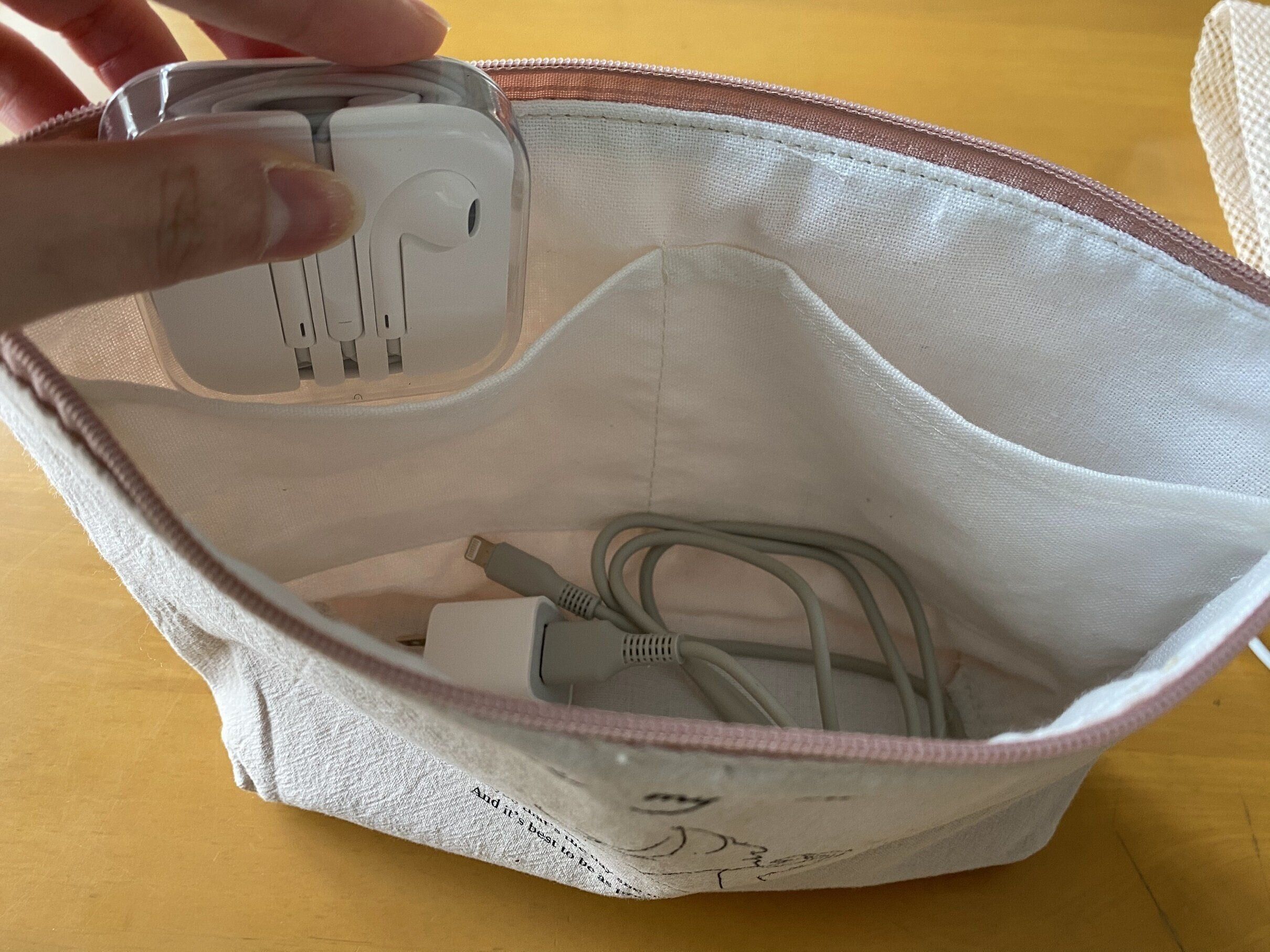 サイズは13×23.5×8cmですが、開けてみてビックリ!中に2つポケットがあります。これはイヤホンがラクラク入る大きさでした。