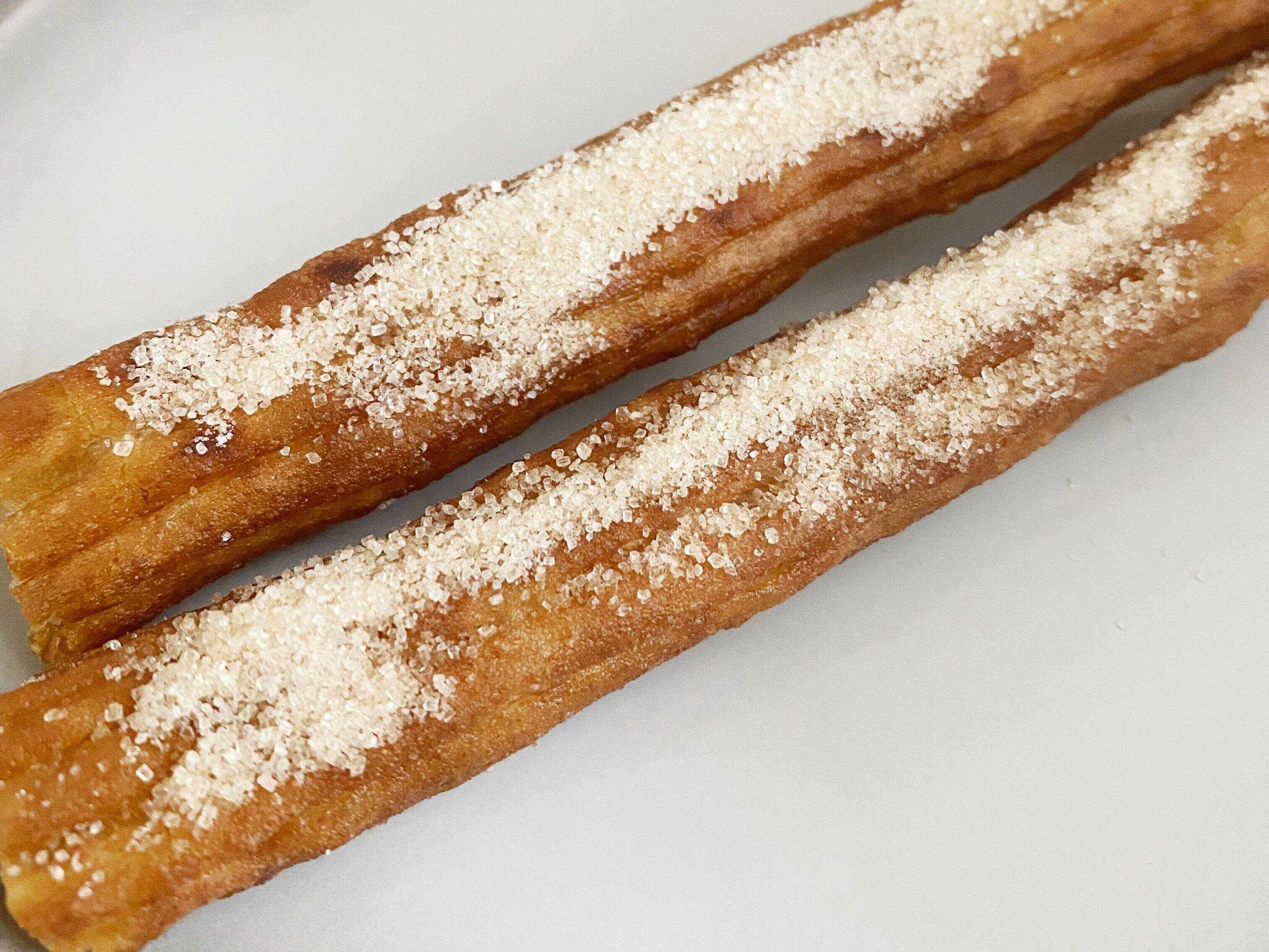 チュロス自体にほんのり塩気があり、それだけでも十分おいしいのですが、シナモンシュガーをかけると、シナモンの風味と甘さが加わり、本格的なチュロスに大変身します。