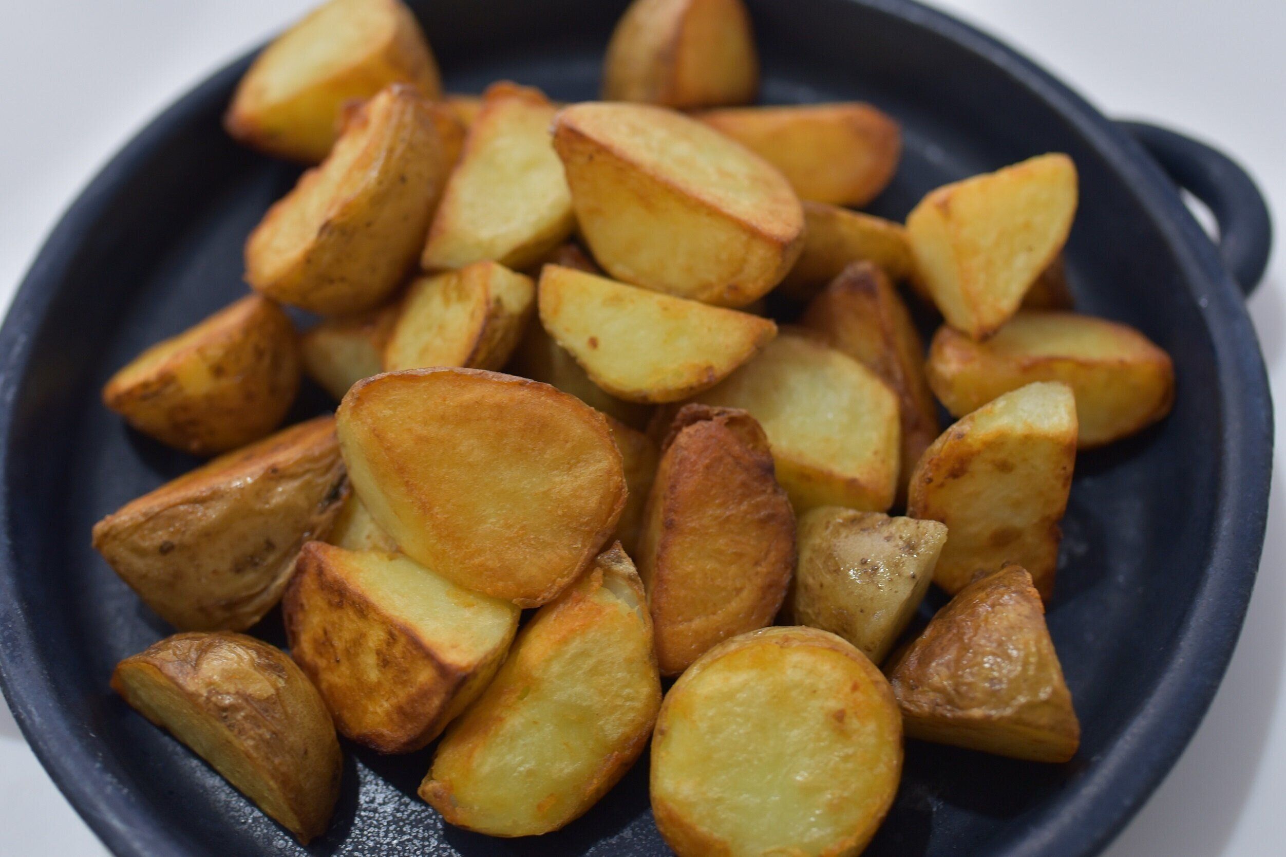 最後はじゃがいもとミートソースの組み合わせです。今回は、新じゃががあったので、皮ごと蒸して柔らかくしてから、フライパンで揚げ焼きにしました。