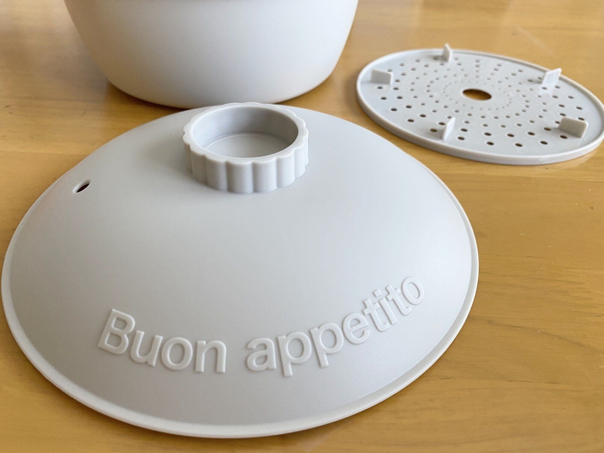 本体サイズは22×18.7×11.1cm。すのこが付属していて、こちらは蒸し野菜や焼きそばなどの水を切る必要があるメニューのときに使用します。