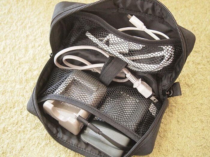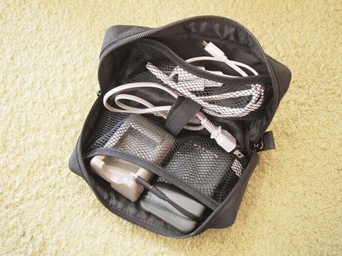 無理なくあっさりと閉まったガジェットポーチ。先ほどのものを詰め込んでいてもスマートにまとめることができました。