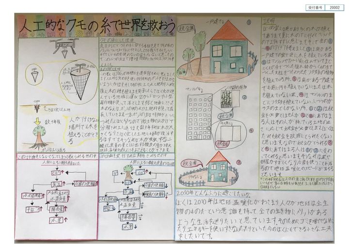 【受賞作品1】クモの糸とドローンで砂漠に植樹「人工的なクモの糸で世界を救おう!」
