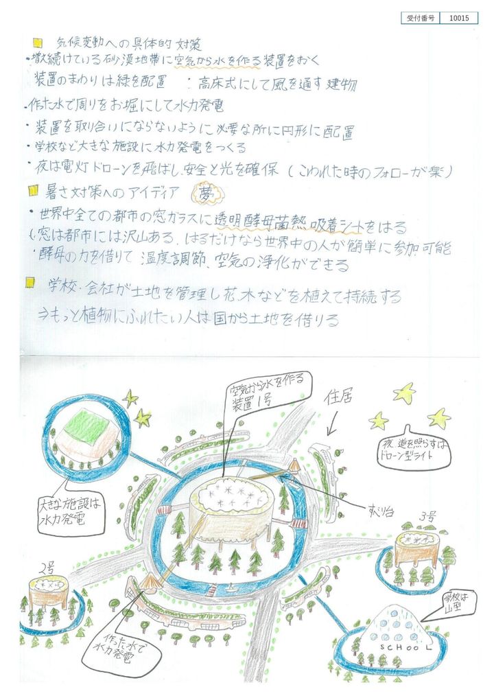 ひとつは、空気から水を作る装置を砂漠に設置して街をつくること。作った水では水力発電も行います。水を作る装置は取り合いにならないように平等に配置するという、SDGsの一つである平和と公正さも考慮されていました。
