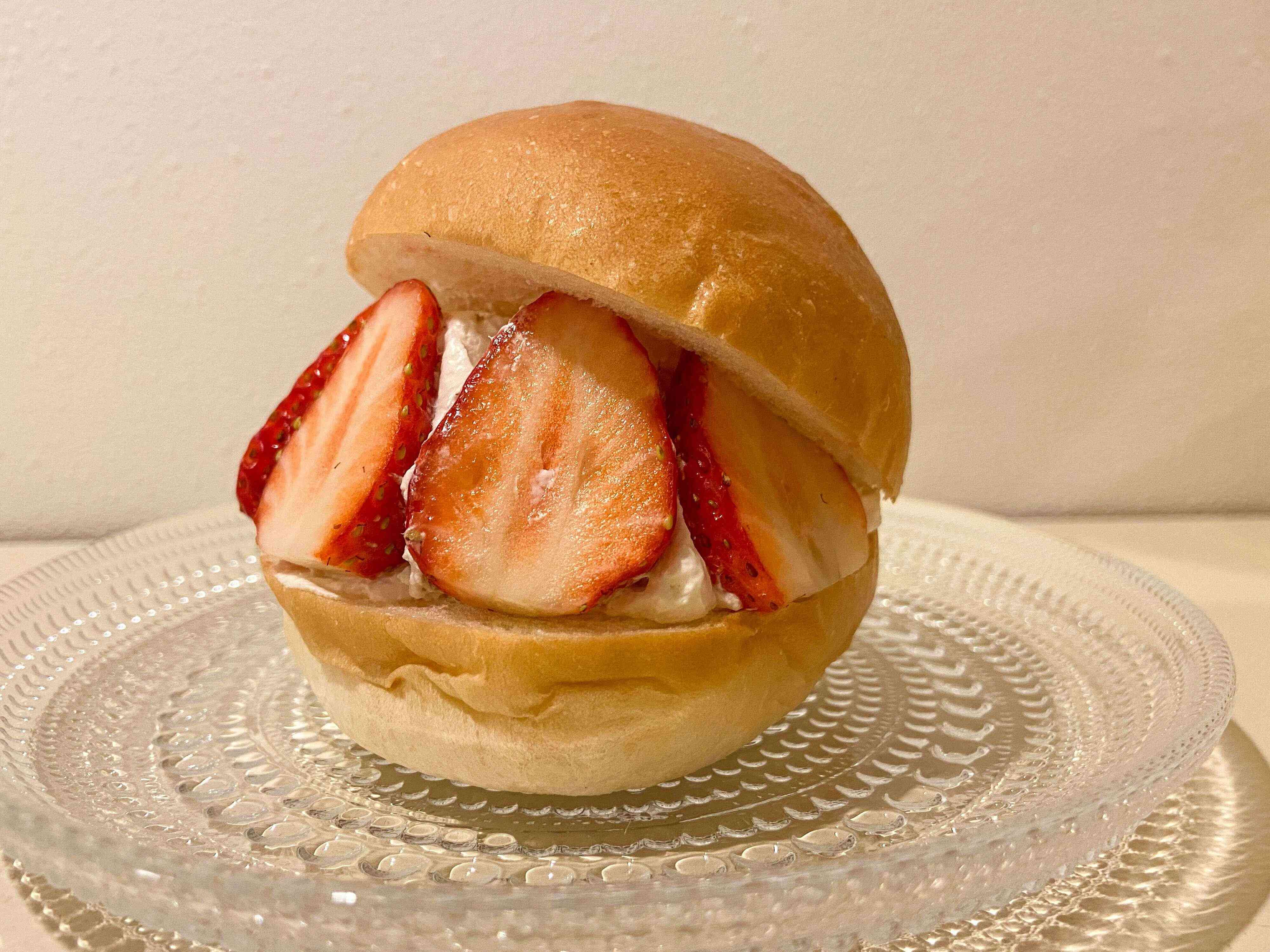ハンバーガーのような形状のパンにクリームがサンドされているシンプルなもの。ハンバーガーよりは一回り小さいです。パンほどずっしり感はなく、朝食やおやつとして手軽に食べられます。