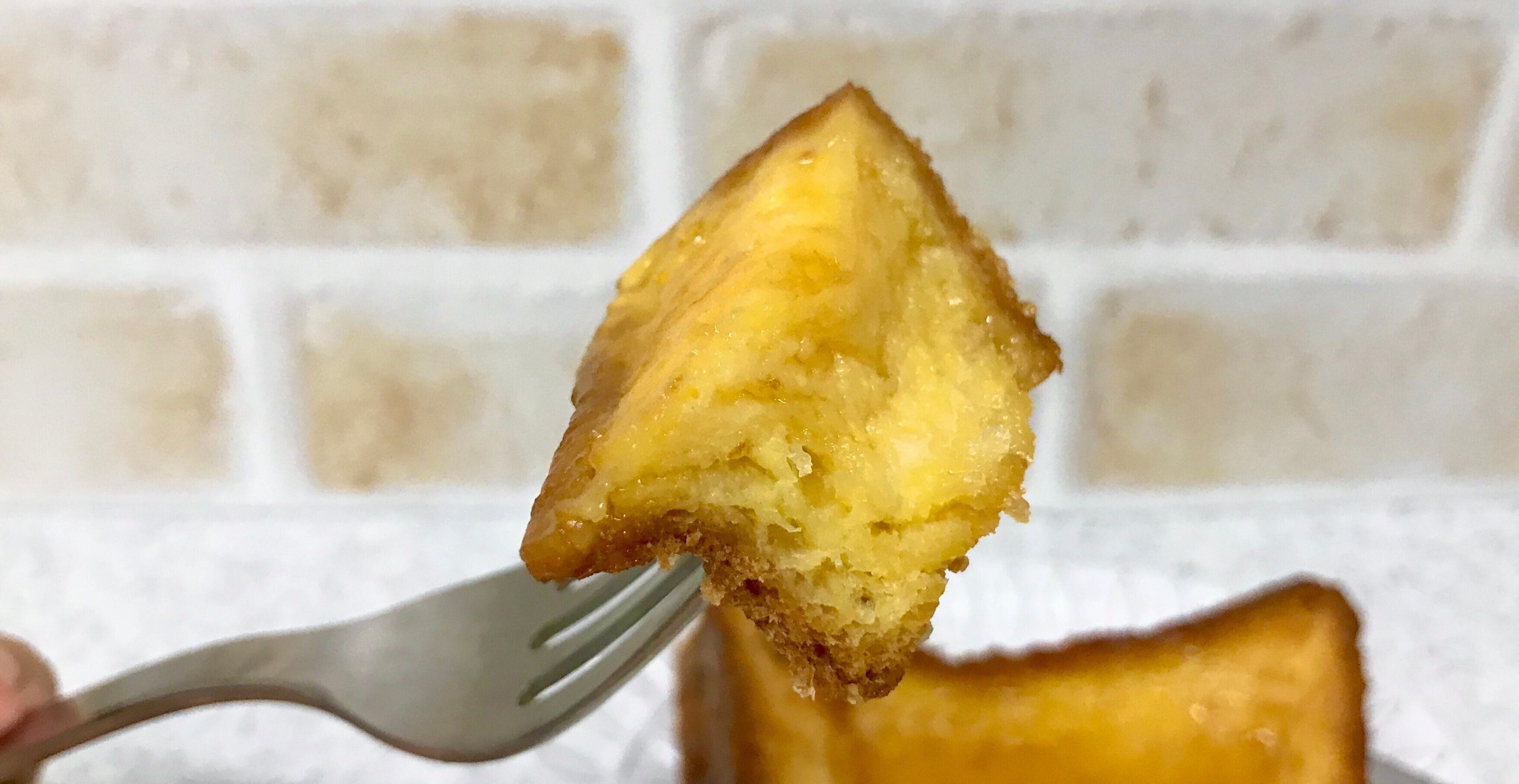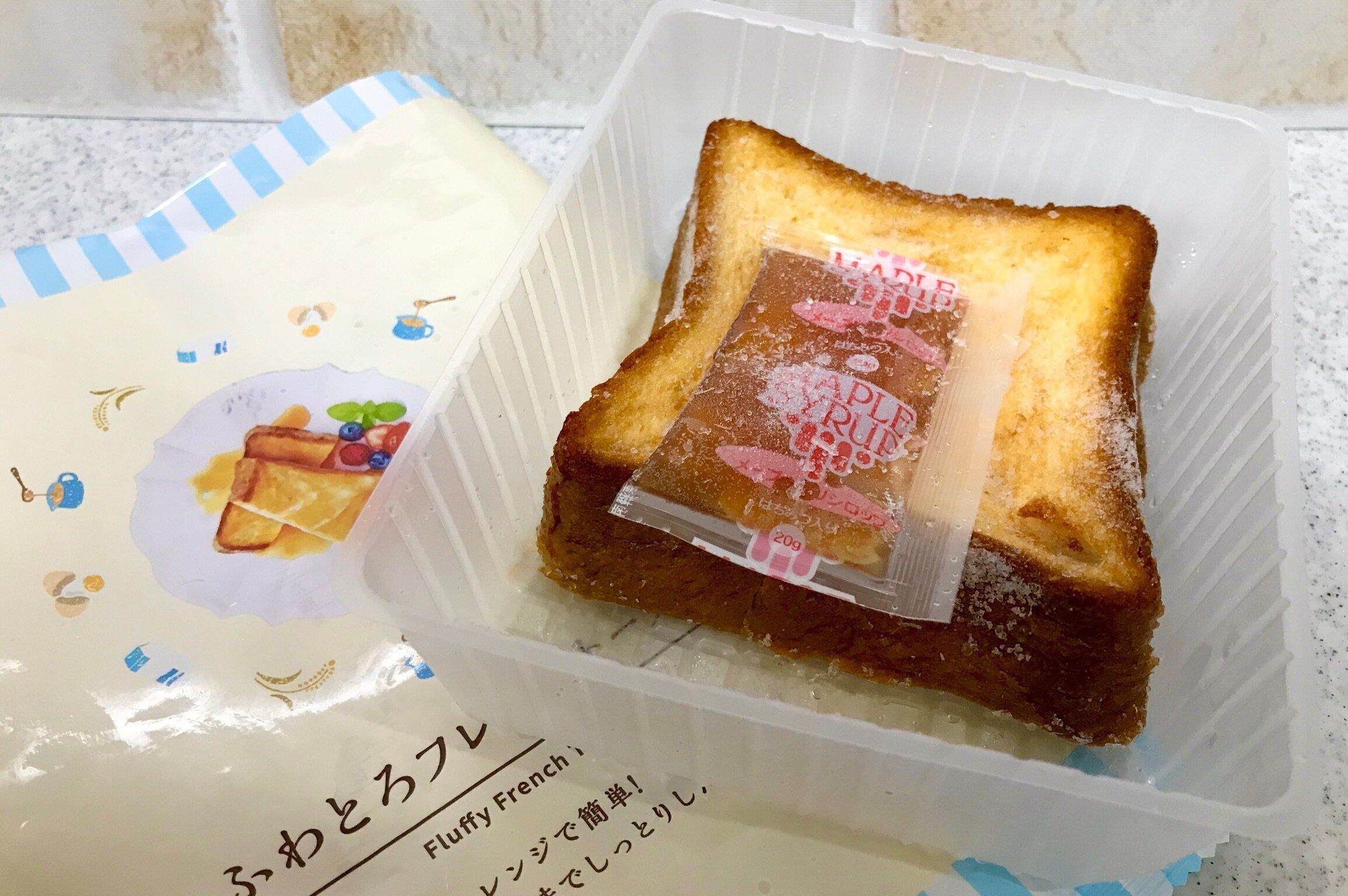 まずはメープル入りシロップをかけずにいただきます。商品名の通り食感が「ふわとろ」です。フレンチトーストが口の中で溶け出します。これはカフェで出されても大丈夫なレベルのおいしさです。