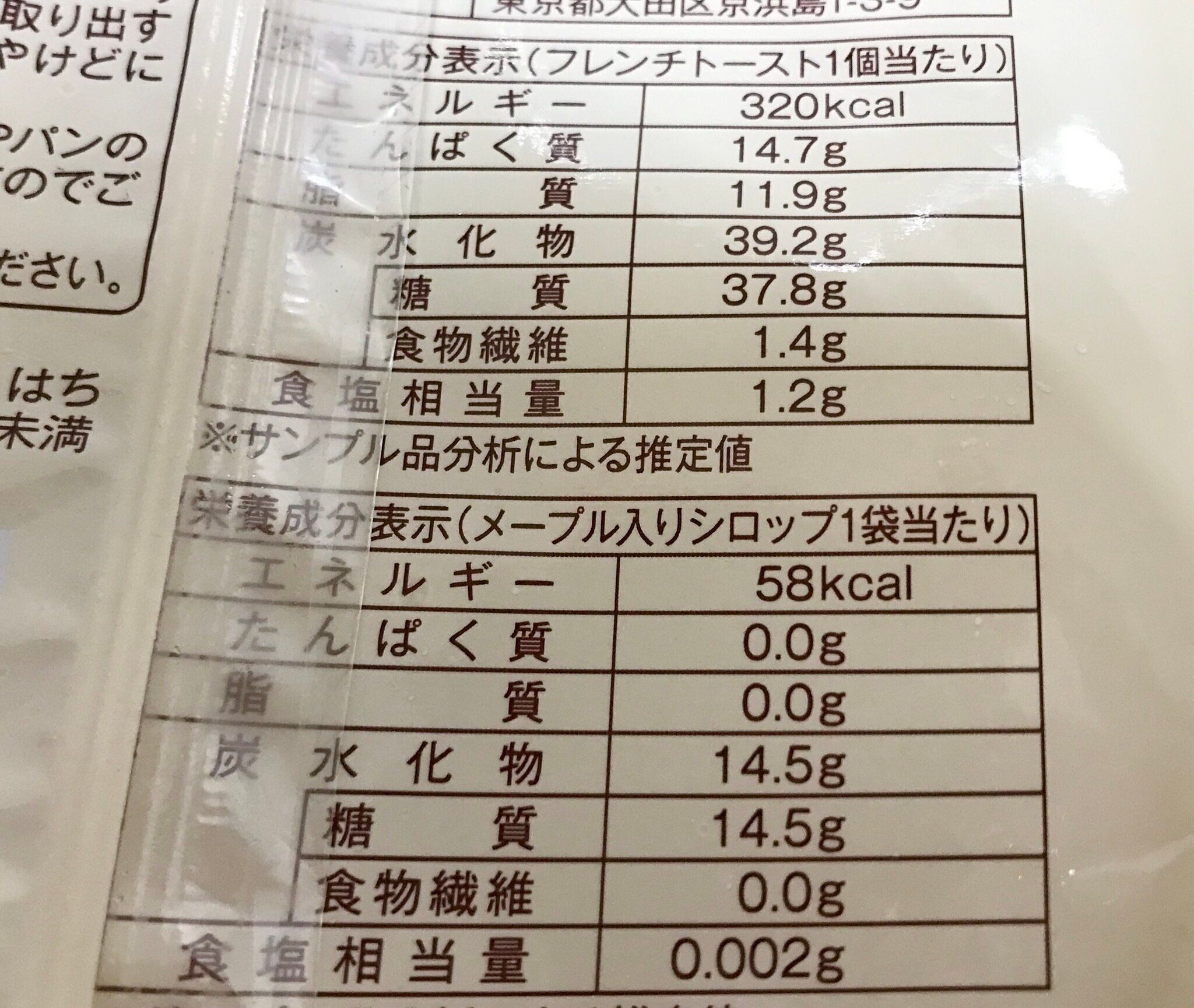 カロリーはフレンチトーストとメープル入りシロップ合わせて、378kcalです。