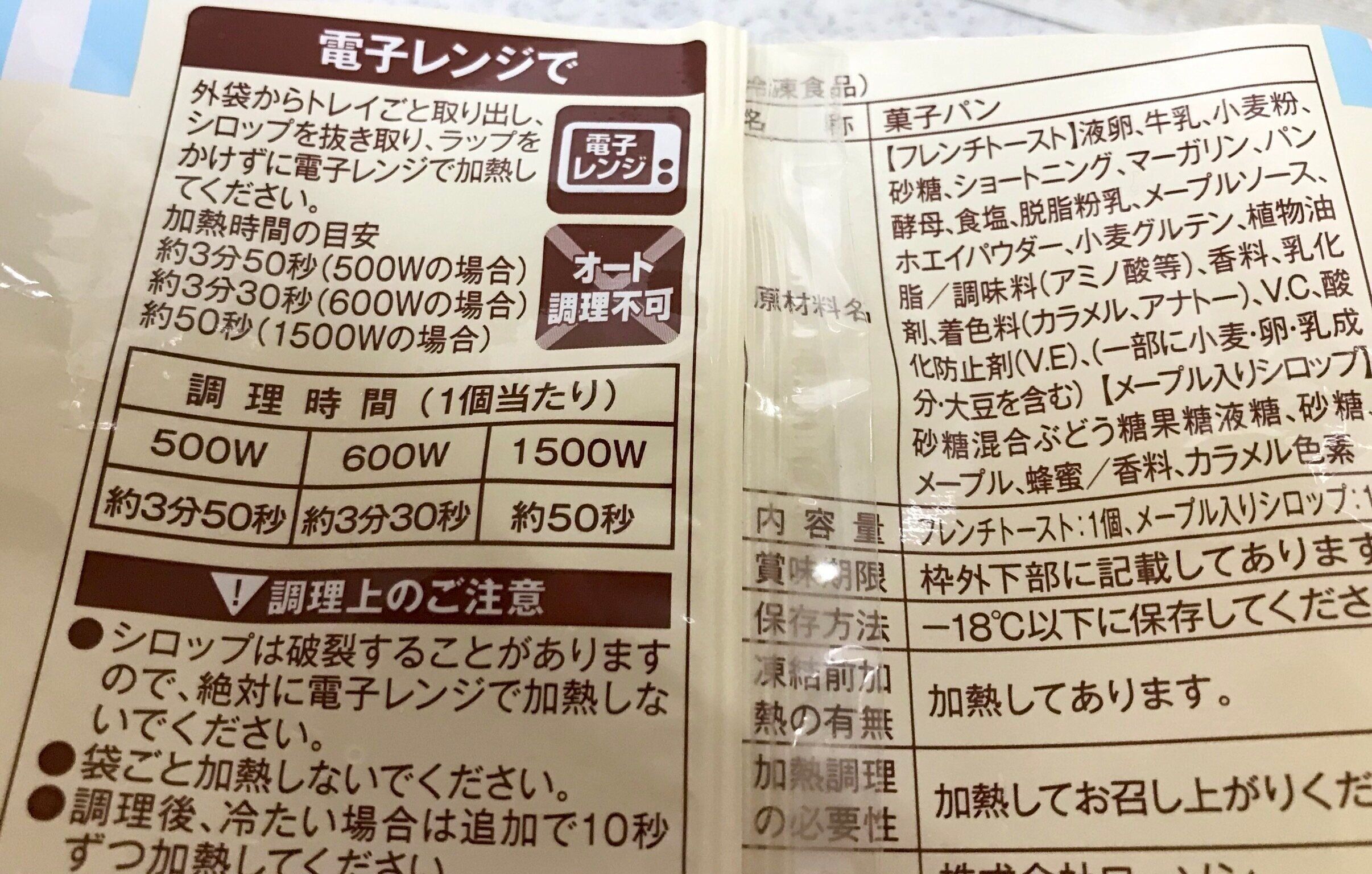フレンチトーストはパンのコーナーにもありますが、冷凍食品コーナーにあるのを発見。気になって購入してみました。
