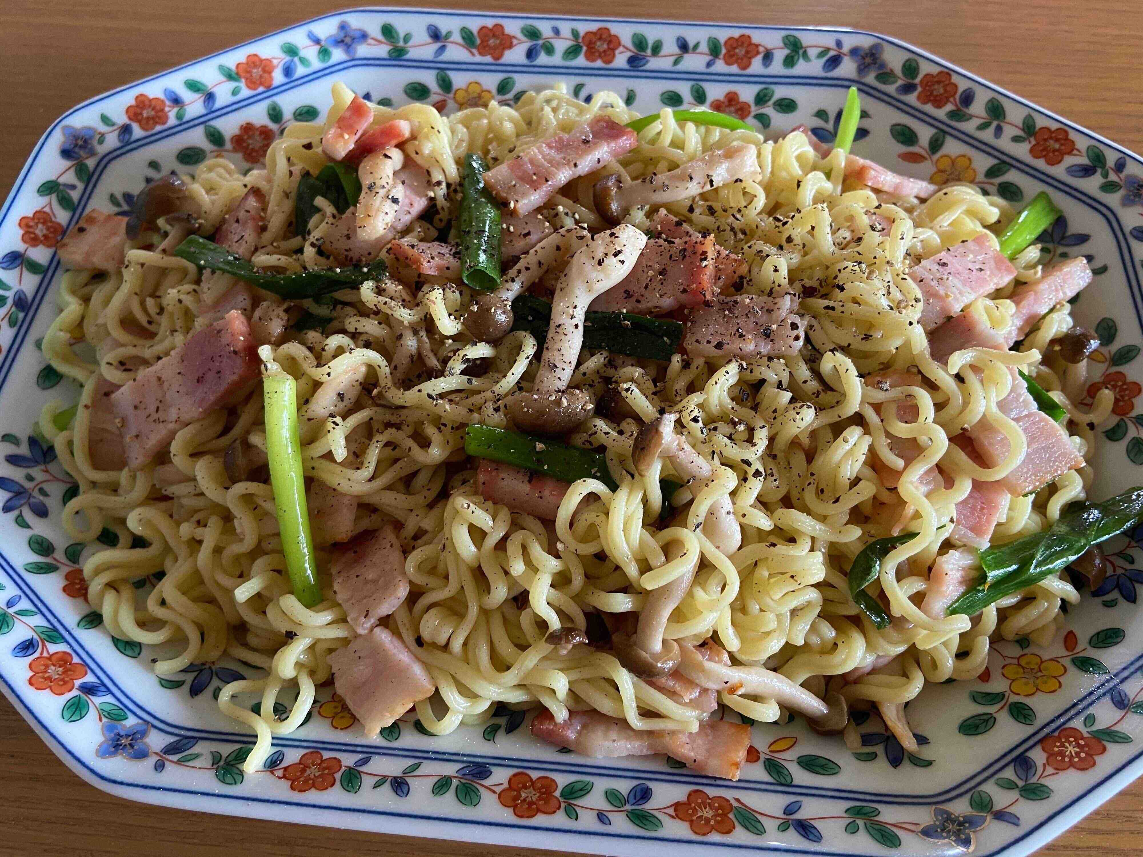 流石業務スーパーというべき、圧巻の焼きそば。こんな商品他店で見たことないですよね……。焼きそばの麺が1kgどどーん!と入ってます。