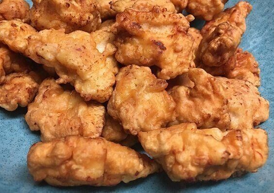 鶏肉に衣をつけて揚げるだけ。味がしっかりついているからご飯が進む美味しさです。