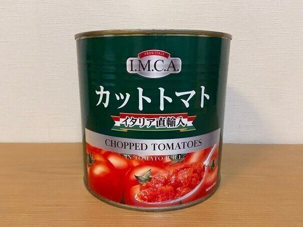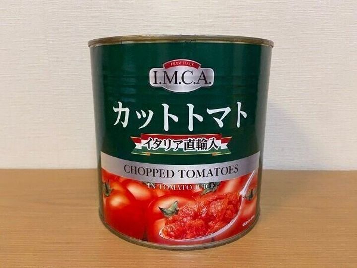 普通のトマト缶は400g入りのものが多いですが、業務スーパーのこのトマト缶はなんと2.5kg!6倍以上もあるビッグサイズのトマト缶なんです。