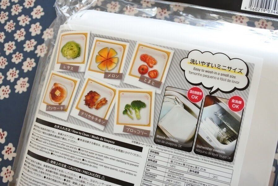 今までのまな板ではカットするのに、ちょっと小さいと思っていた食材も余裕でカットできるようになりました。食洗機や漂白剤使用は変わりなくOKです。