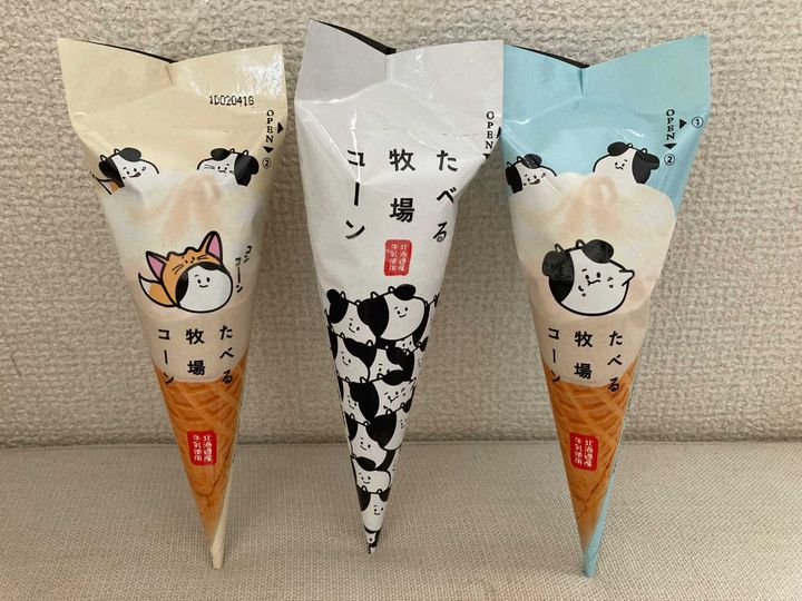 アイス部分は食べる牧場ミルクカップと同様に北海道産牛乳を56%使用したミルクアイスで、コーン部分には小麦粉の一部に全粒粉が使用されています。