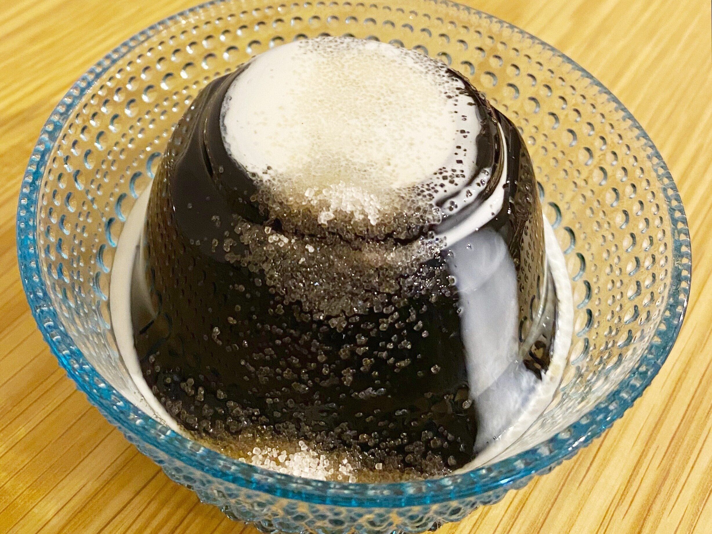 ブラウンシュガーの甘さとコーヒーフレッシュのクリーミーさがコーヒーゼリーと非常によく合います。