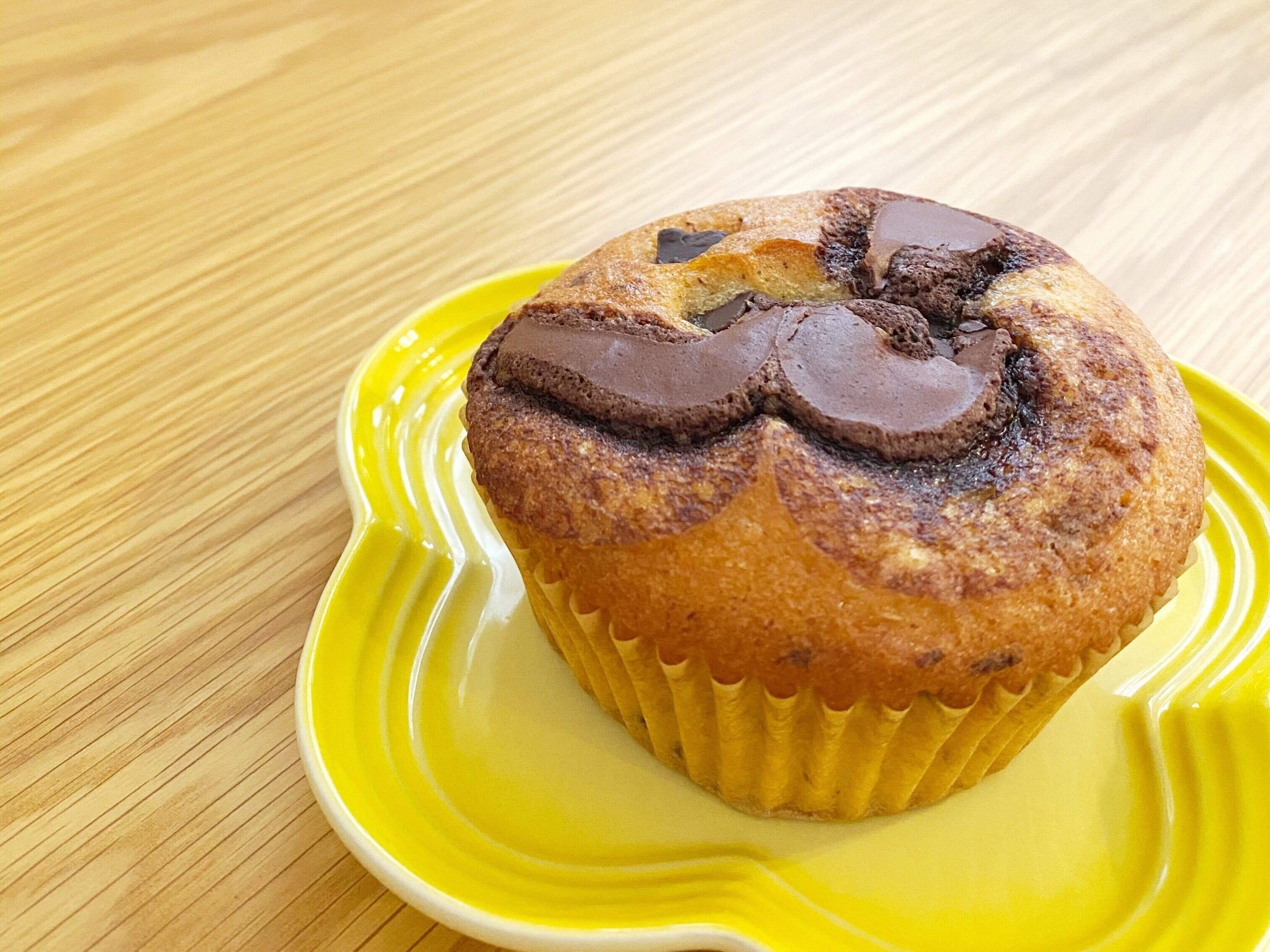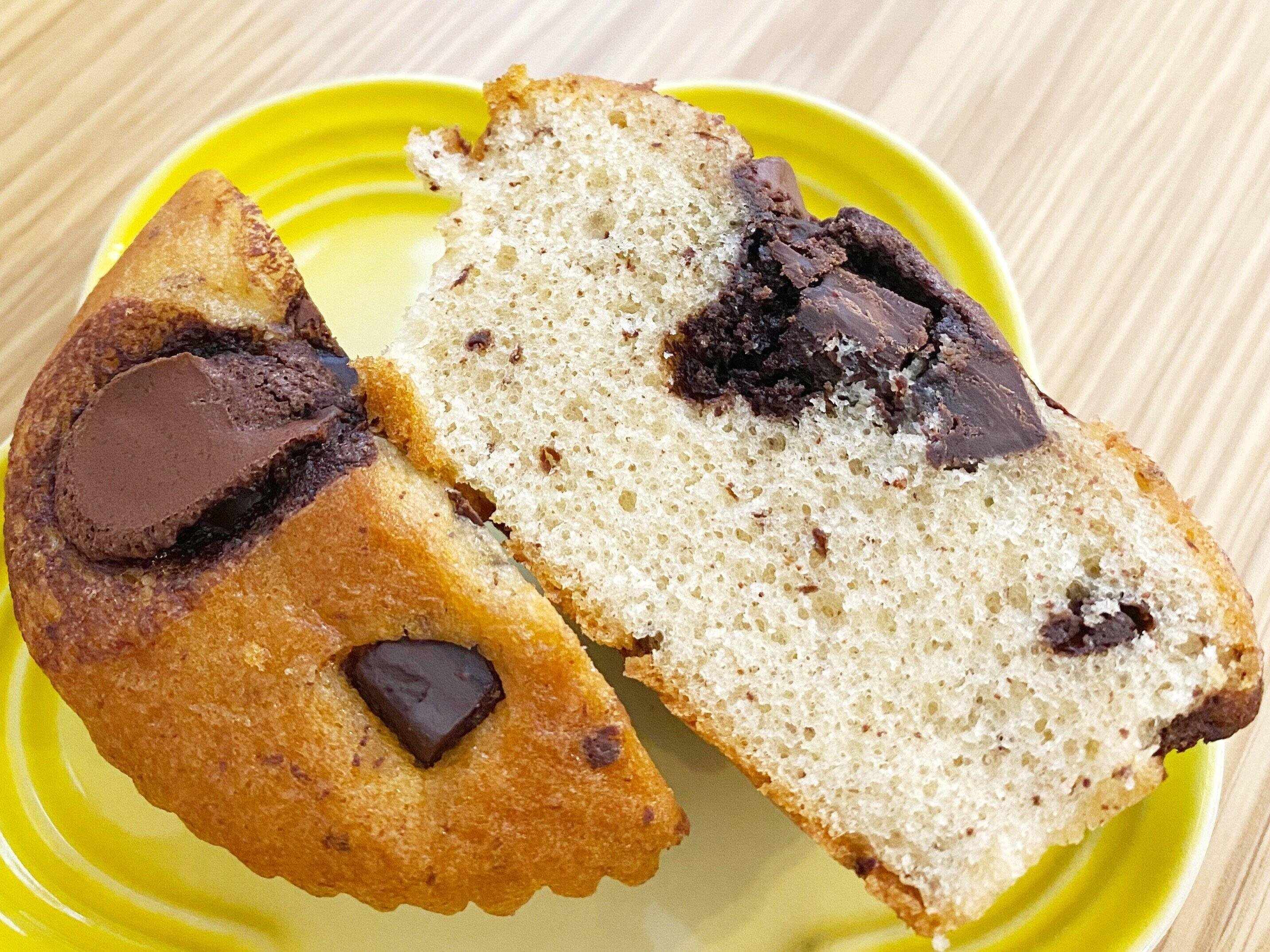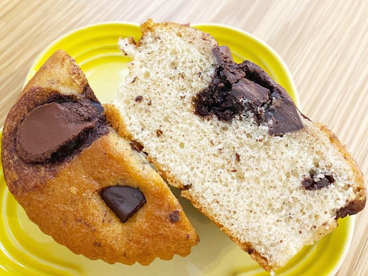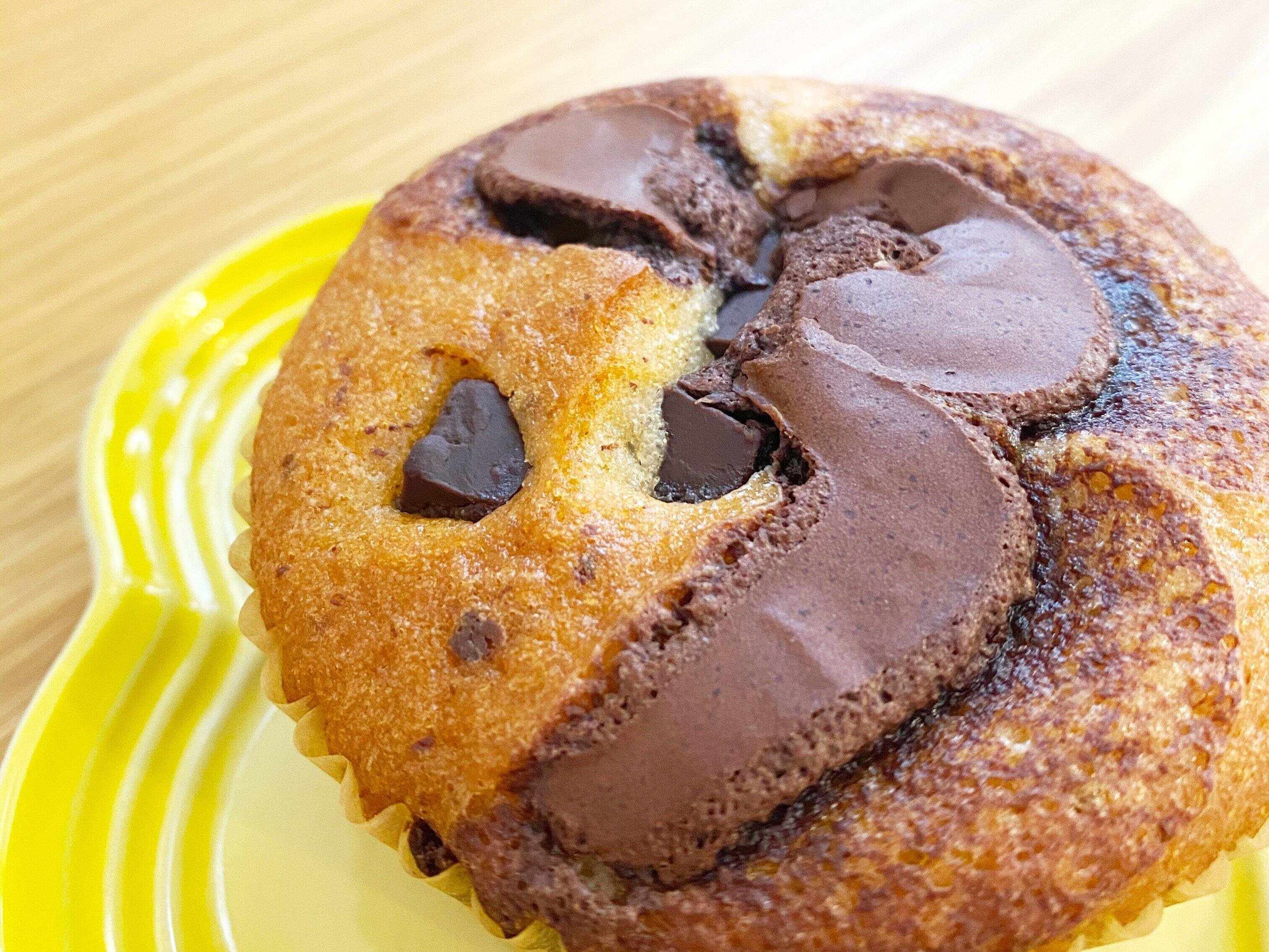 同じチョコレートでも全く違う食感と味わいの2種のチョコレートが、口の中で溶けながらマフィン生地と混ざり合っていく瞬間がなんとも幸せです。