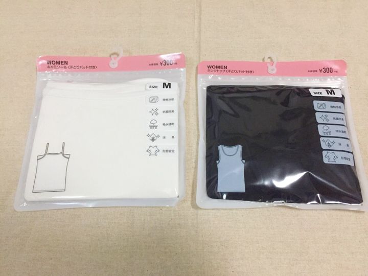 今回ご紹介するのは「快適インナー タンクトップ」「快適インナー キャミソール」(330円)です。