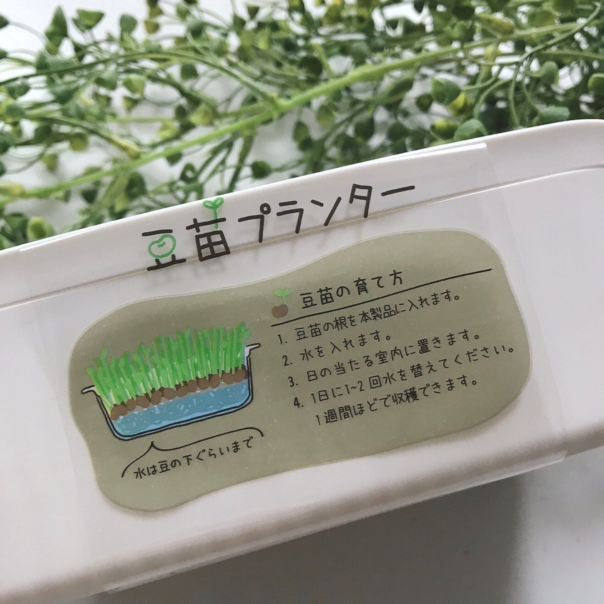 透明フィルムに豆苗の育て方が載っているので、豆苗栽培が初めての方にも安心して挑戦できます。