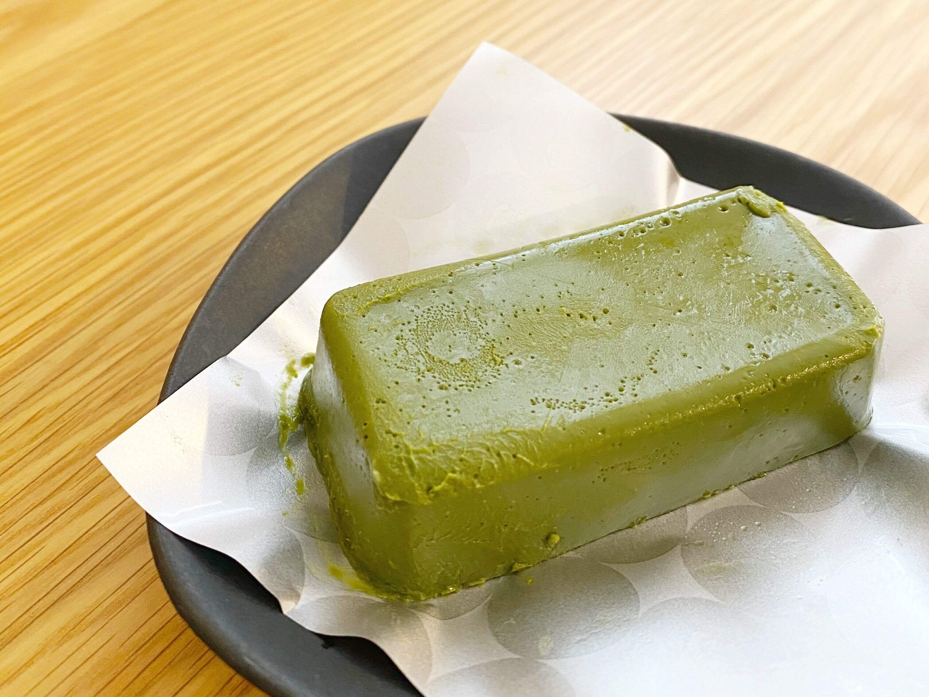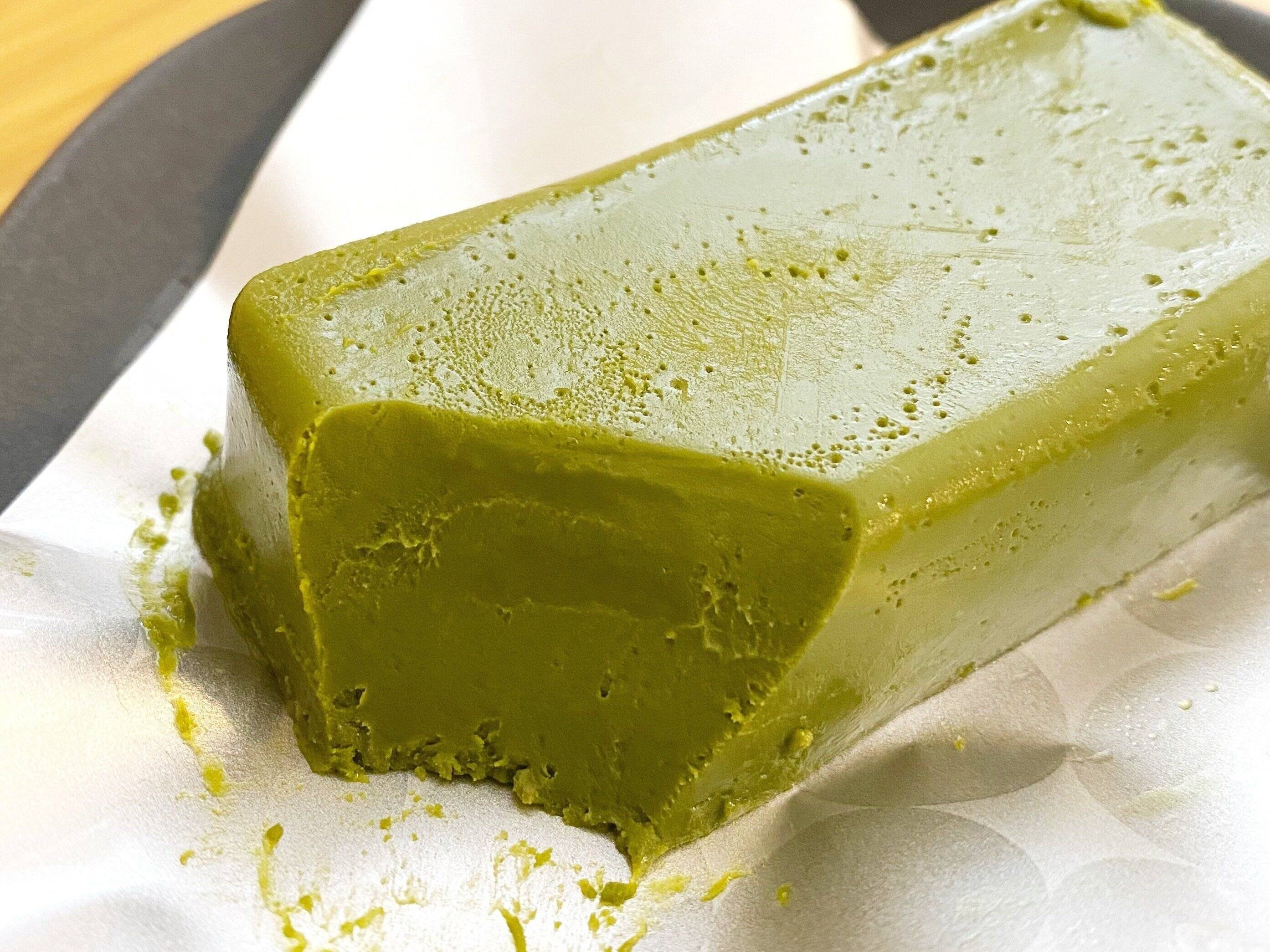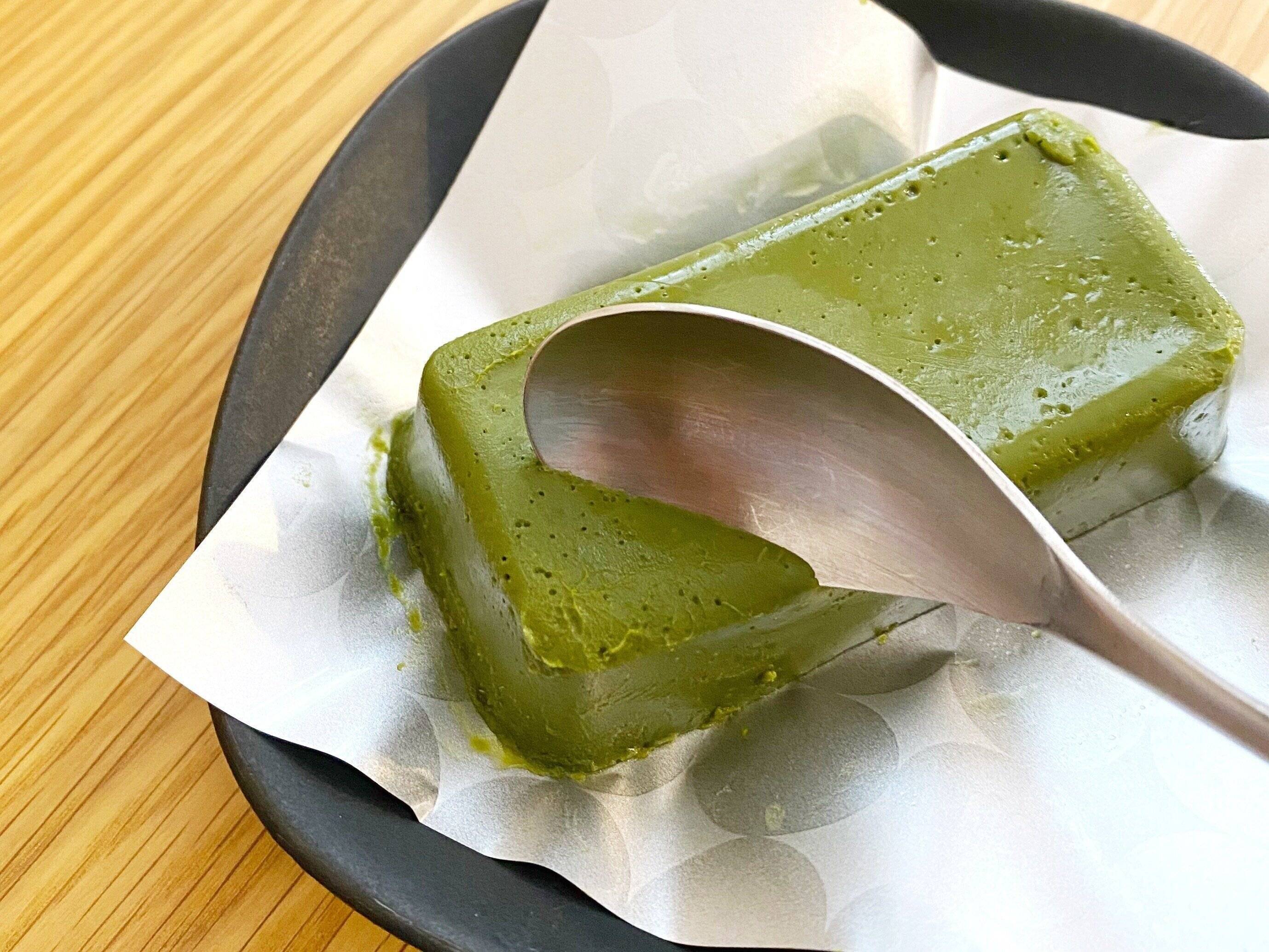 今まで食べてきたテリーヌの中でもトップクラスのねっとり食感です。舌にまとわりつくようなねっとりですが、口どけが良いので「スーッ」と溶けていきます。それと同時に抹茶の香りが「フワァ〜」。