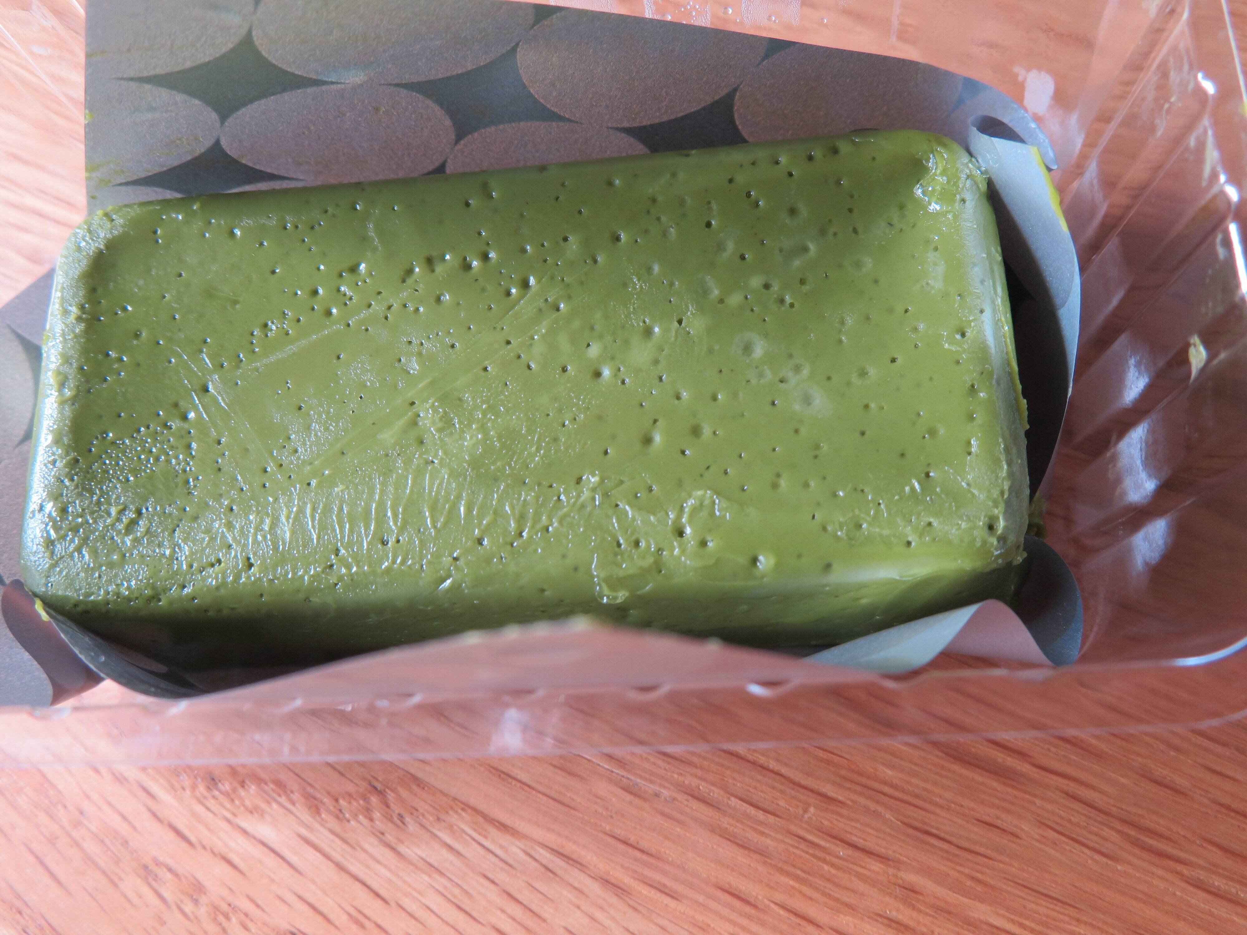 中が見えないパッケージなのは、抹茶の風味を損なわないためなのかと思います。抹茶好きの私の調べによると、抹茶スイーツは光を通さない包装に入っていることが多いのです。それだけ繊細なのですね。