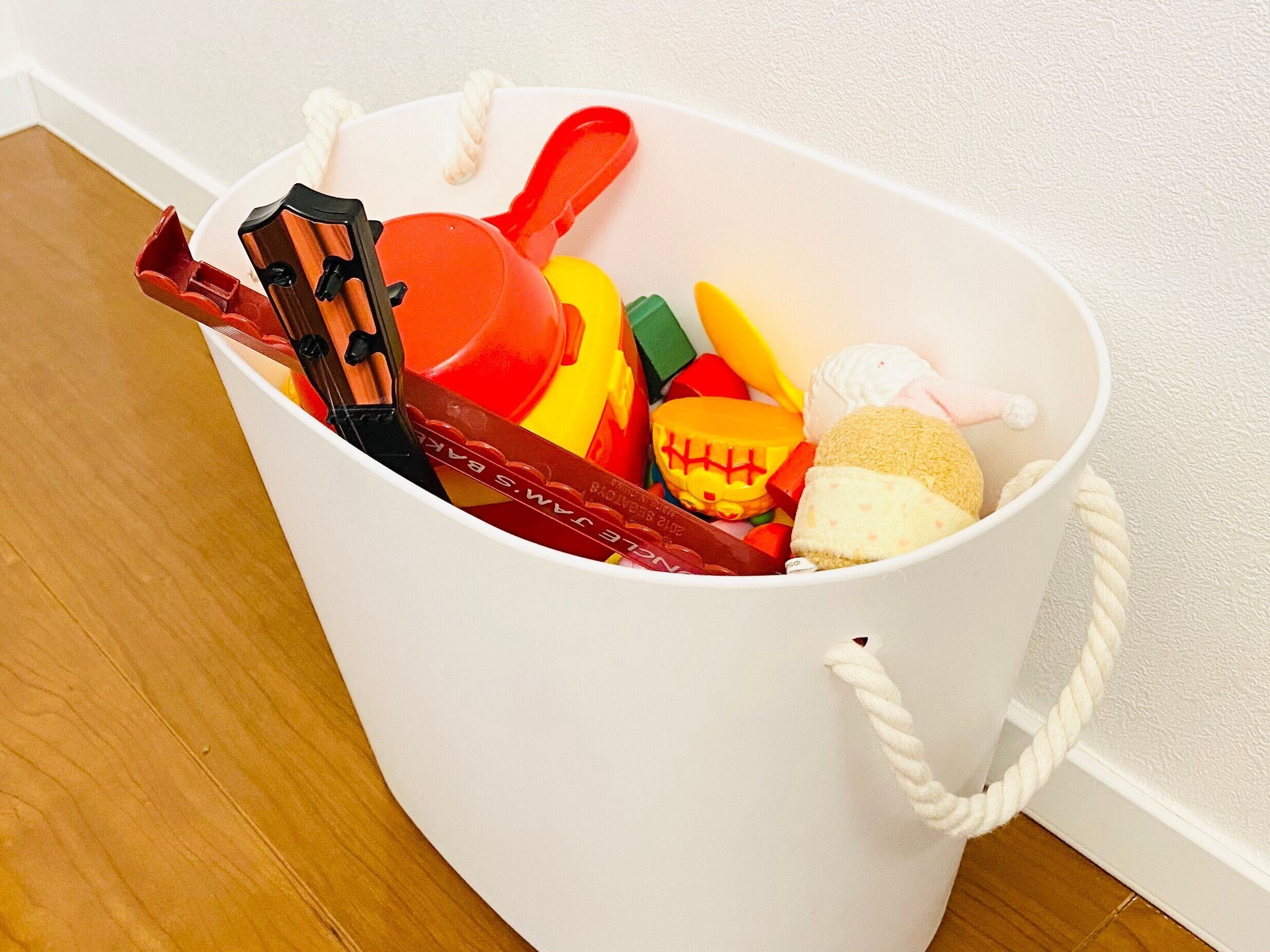 我が家はもう一度着る洋服(ルームウェア)のちょい置きや、子どものおもちゃ入れ、洗濯カゴとして複数購入しました。