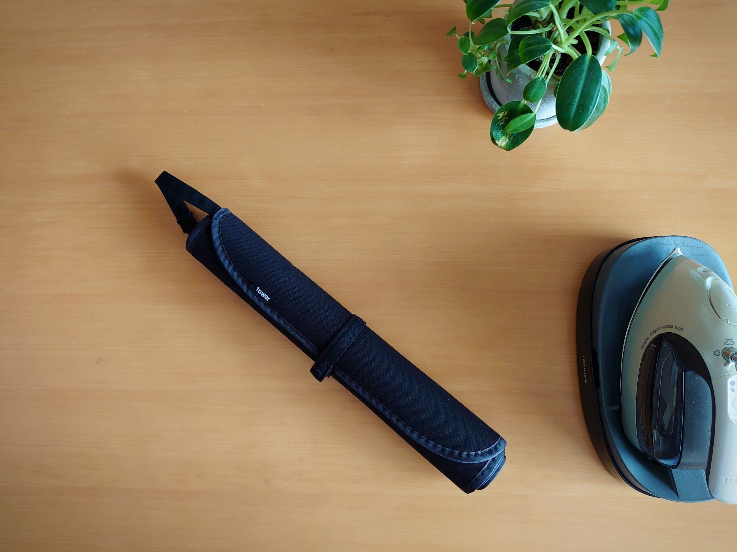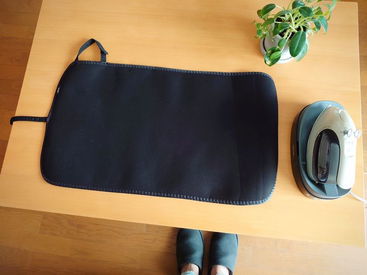 アイロン台って、大きくてけっこう重いものが多くないでしょうか。これはとってもコンパクト、指で持てる軽さです。使う時はリビングのテーブルの上に広げて、しまう時はくるくると丸めます。アイロンは私があまりしたくない家事の1つなので、なるべくノーアイロンで済む衣類を選ぶようにしています。そんな私にちょうどいいアイロンマットです。