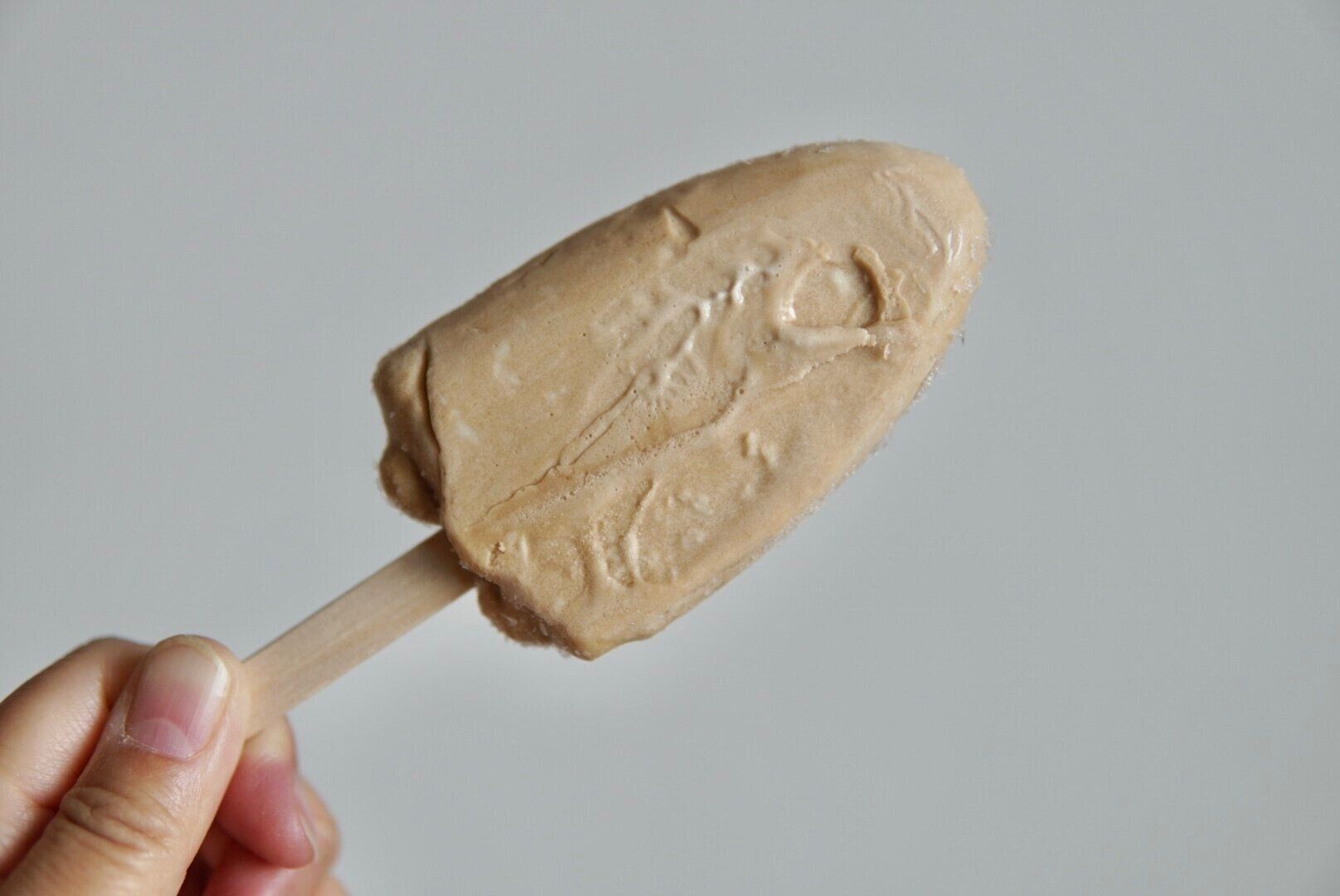 一口目をてっぺんからパクッと食べられる幸せ。四角いアイスではこうはいきません。