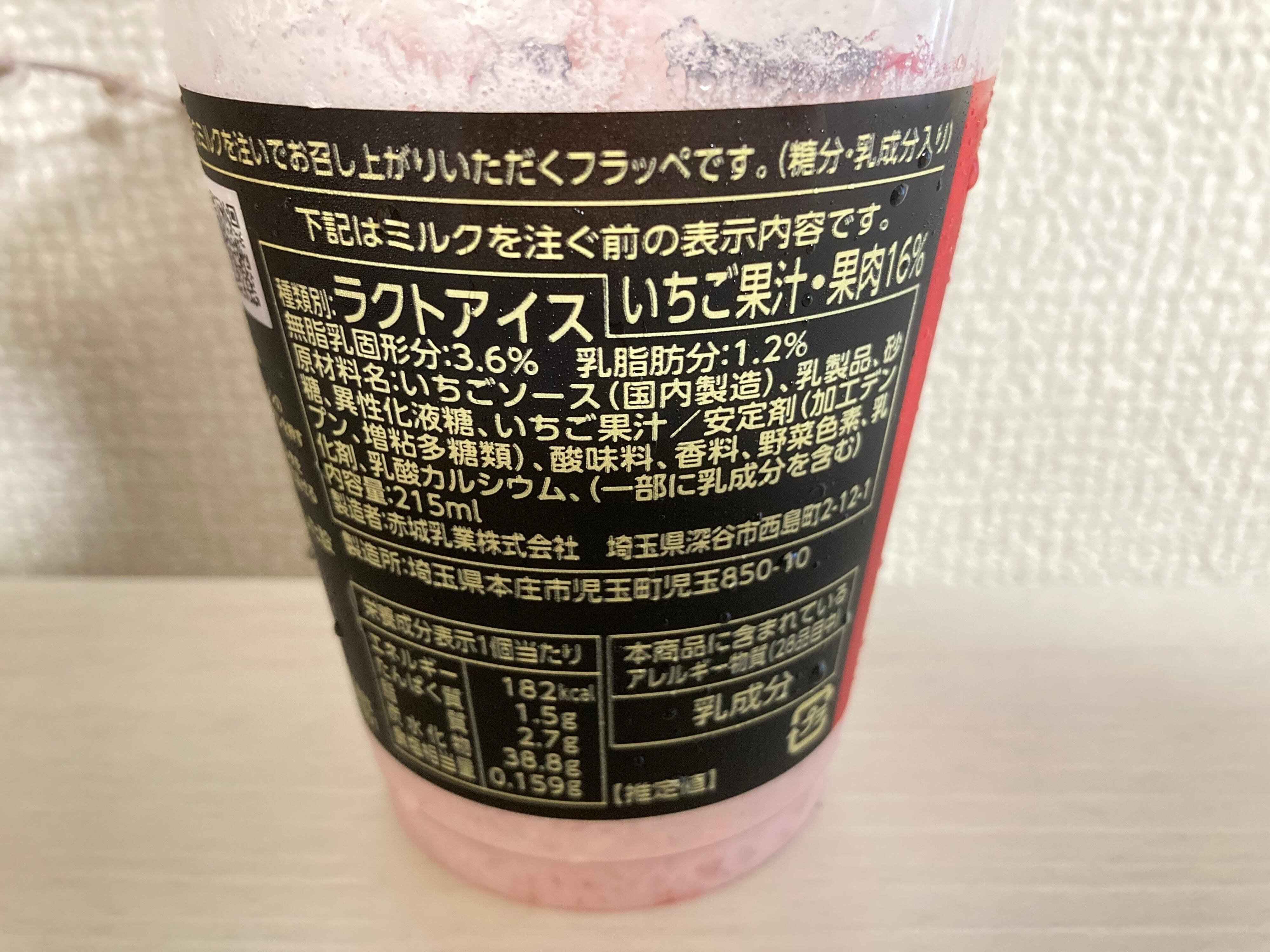 1杯182kcalなので、フラッペにしては思ったより少なめですね。