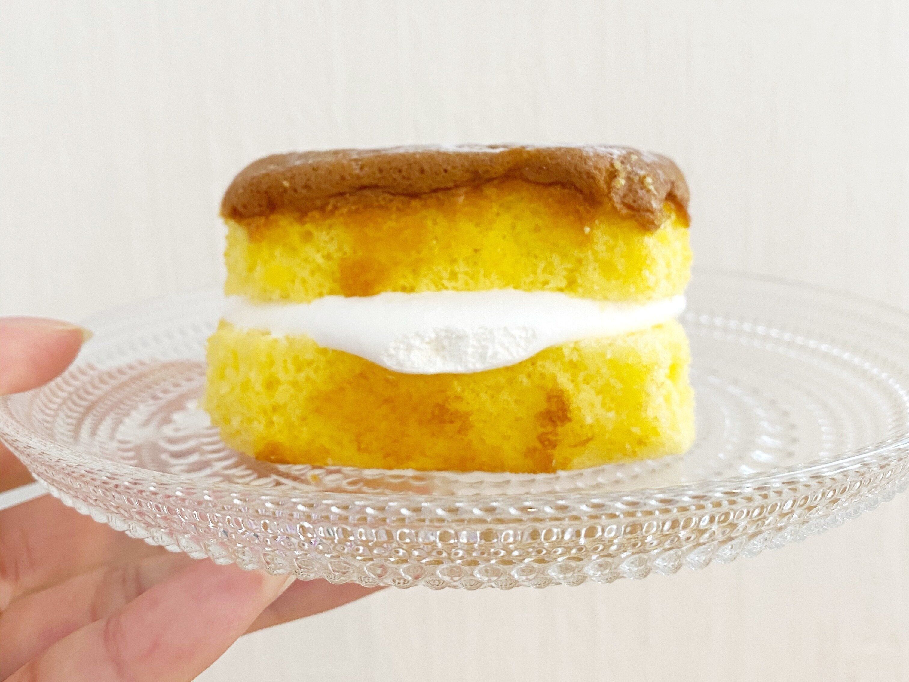 湯煎焼きでじっくり焼きあげたカステラ生地の間にクリームがサンドされています。
