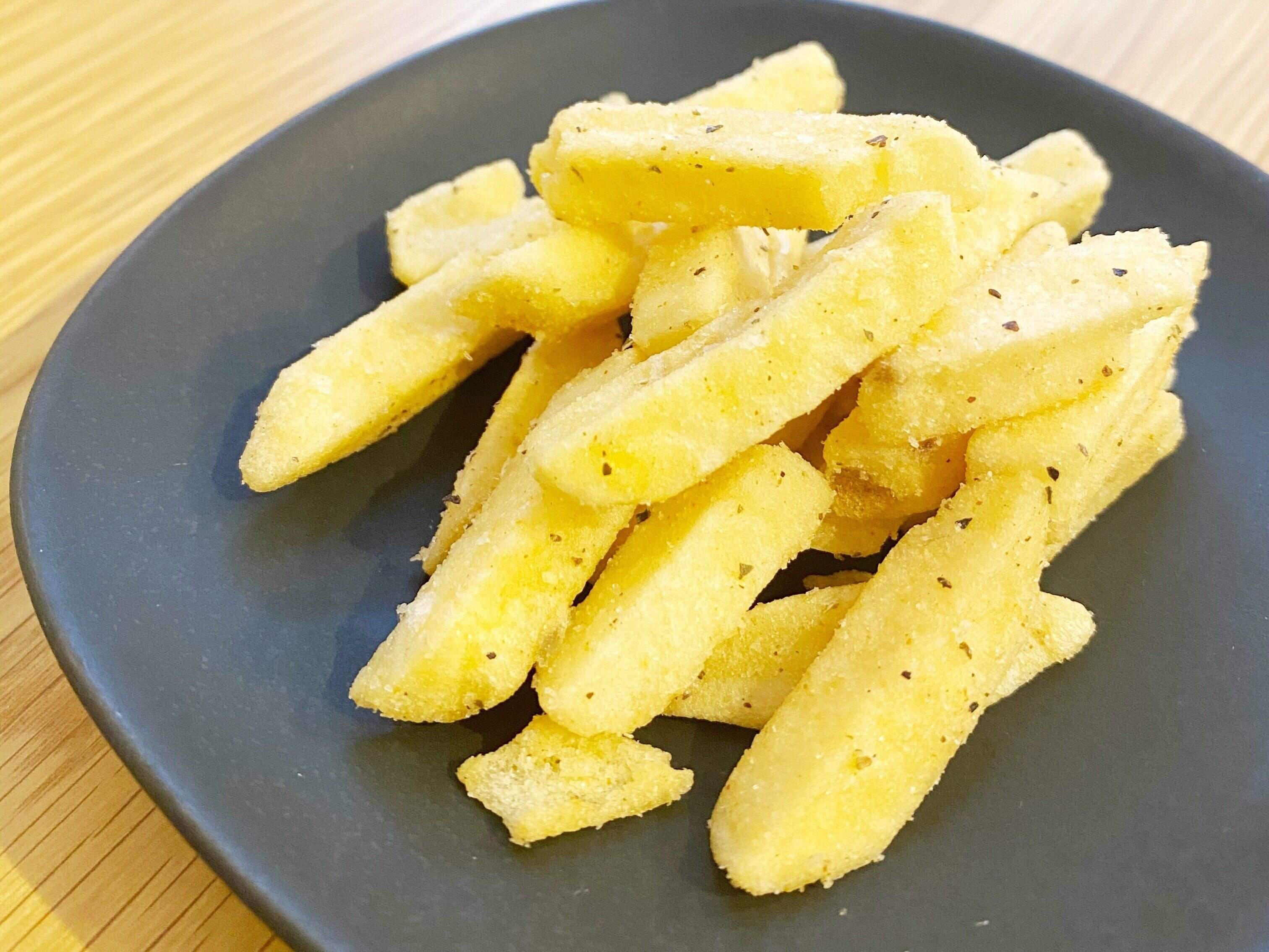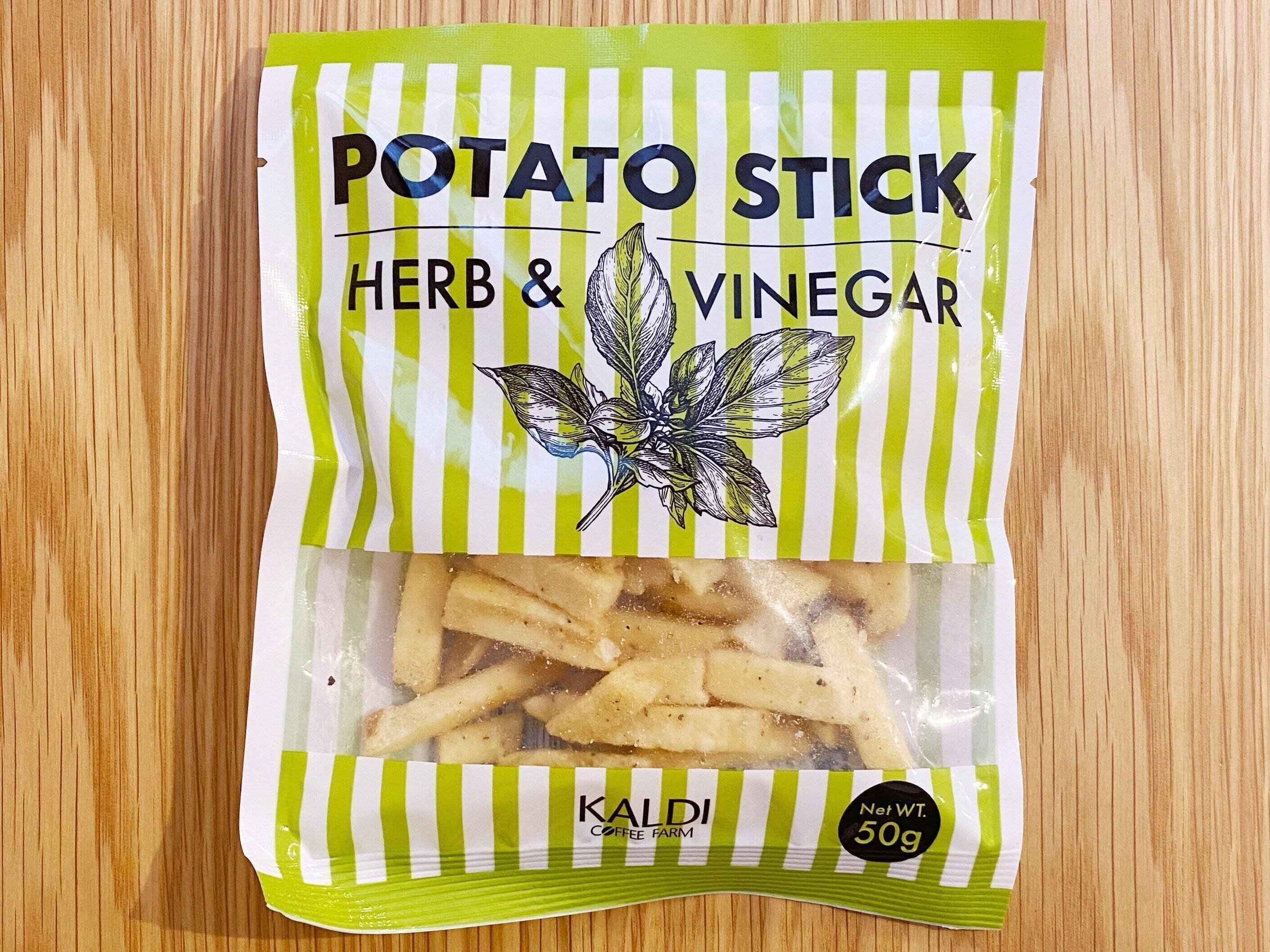 フライドポテトをハーブビネガー風味のシーズニングで味付けしたスナック菓子。