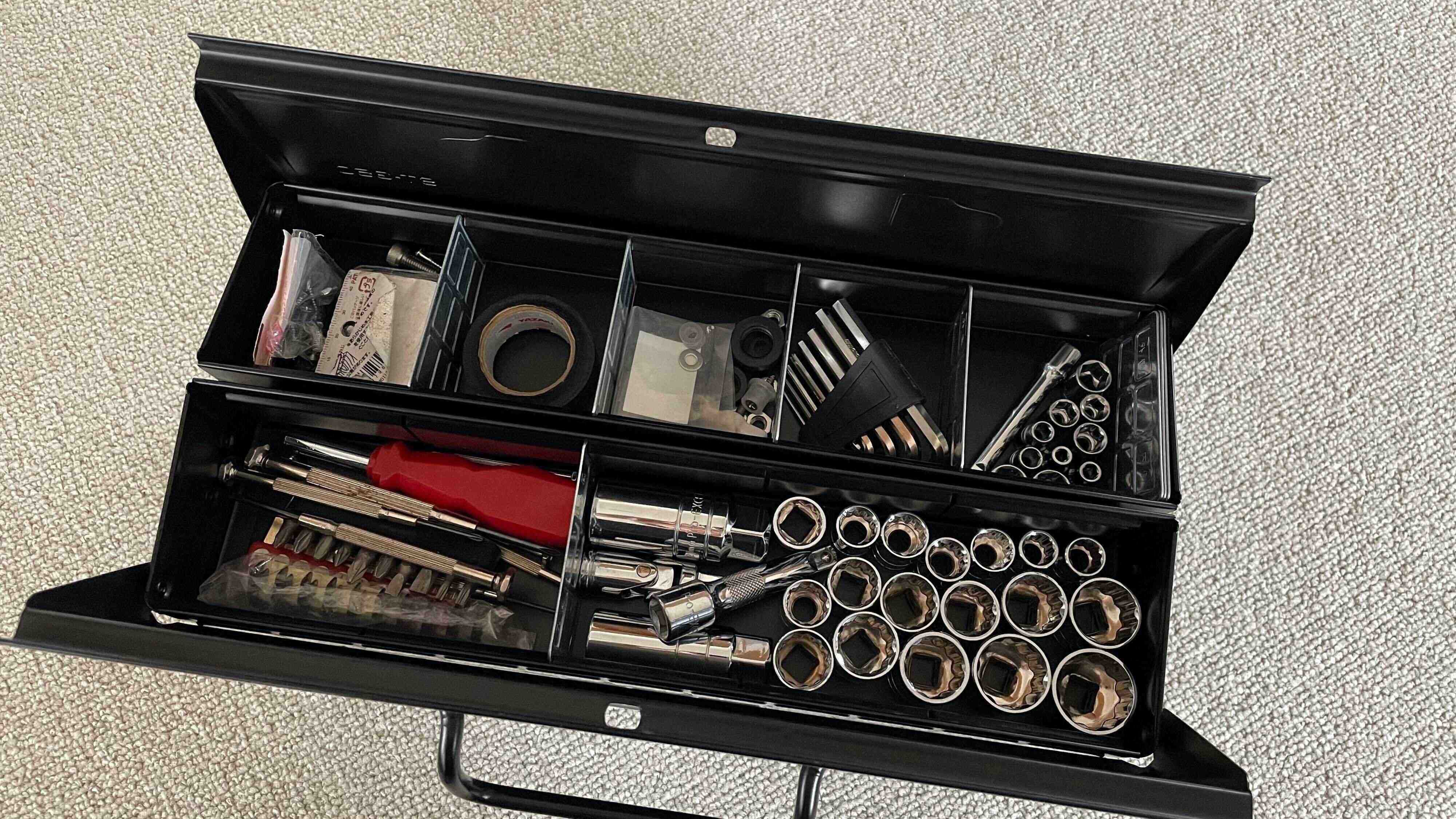 さらに、下段にも仕切りのない空間があり、長めの工具をいれることができます。