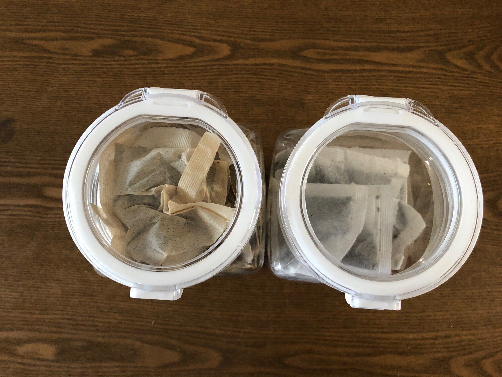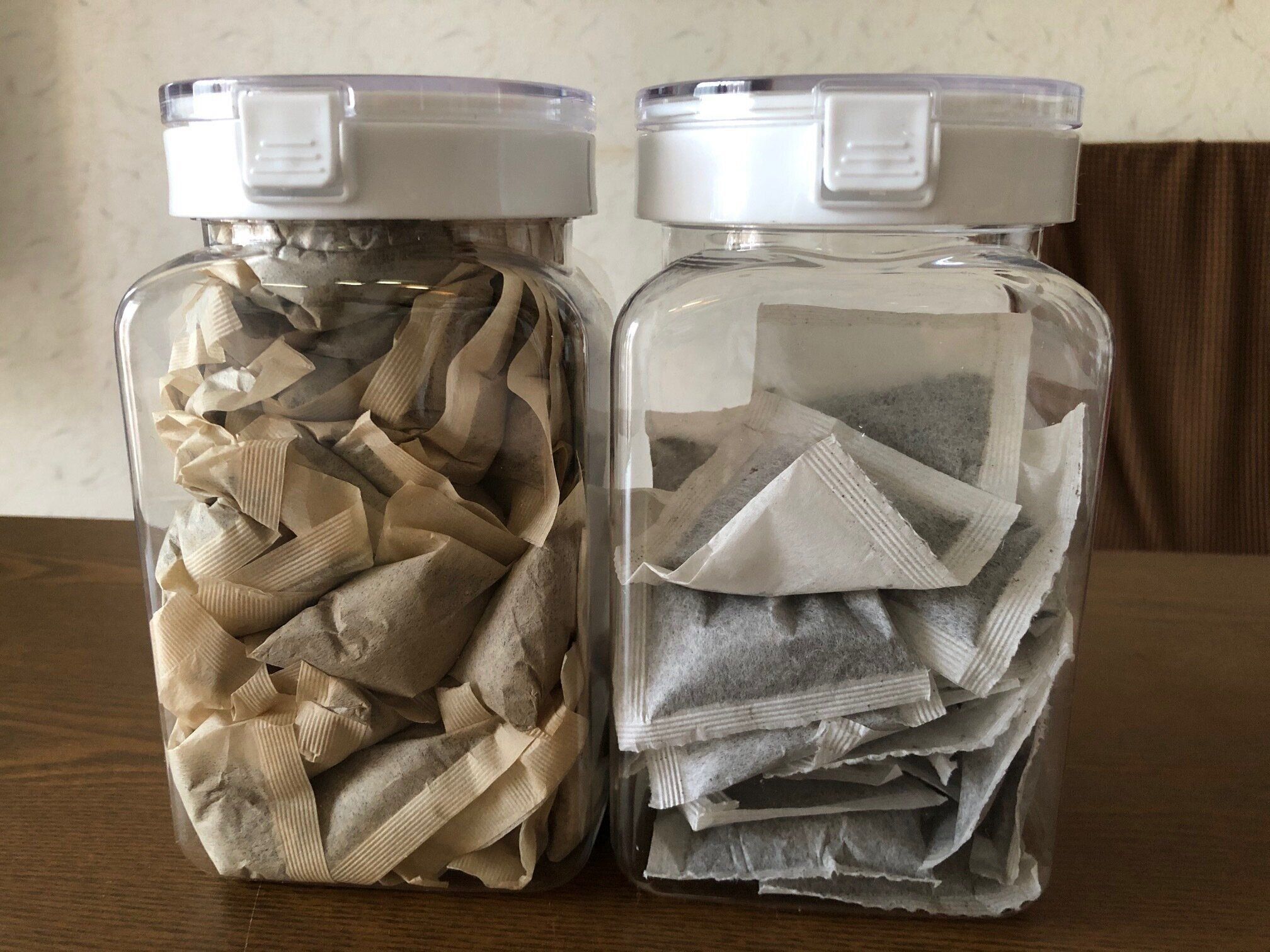 お茶のパックやコーヒー豆などを入れて使っています。片手で開いて取り出せるのは、お茶やコーヒーを淹れる際に本当に便利!