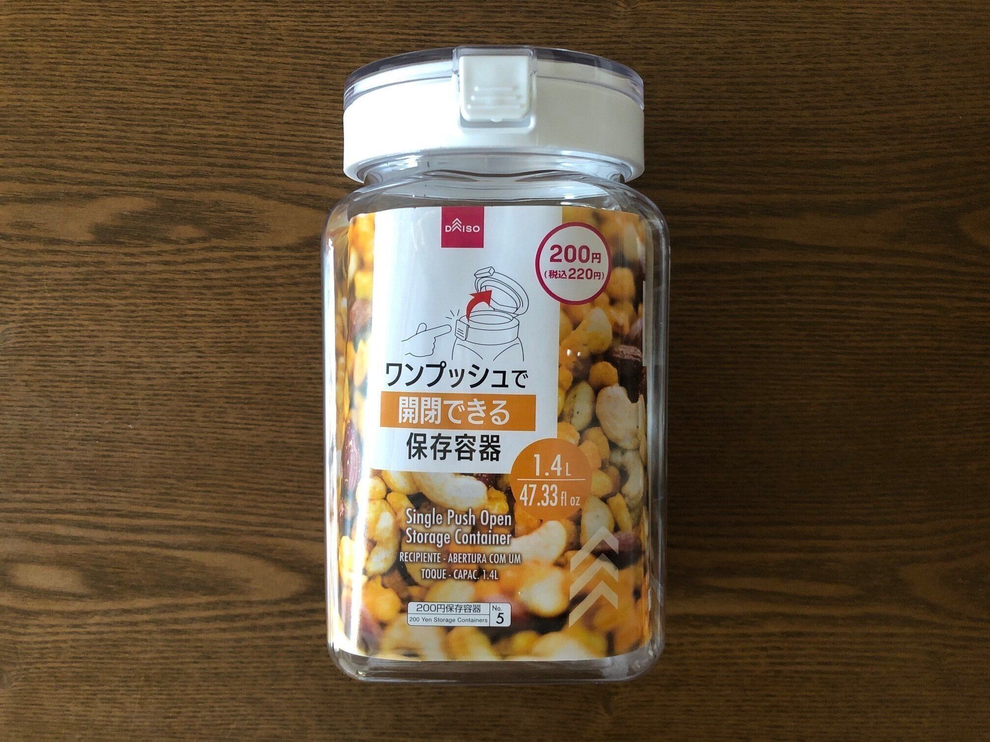 おすすめ保存容器は、ダイソーの「ワンプッシュで開閉できる保存容器」です。