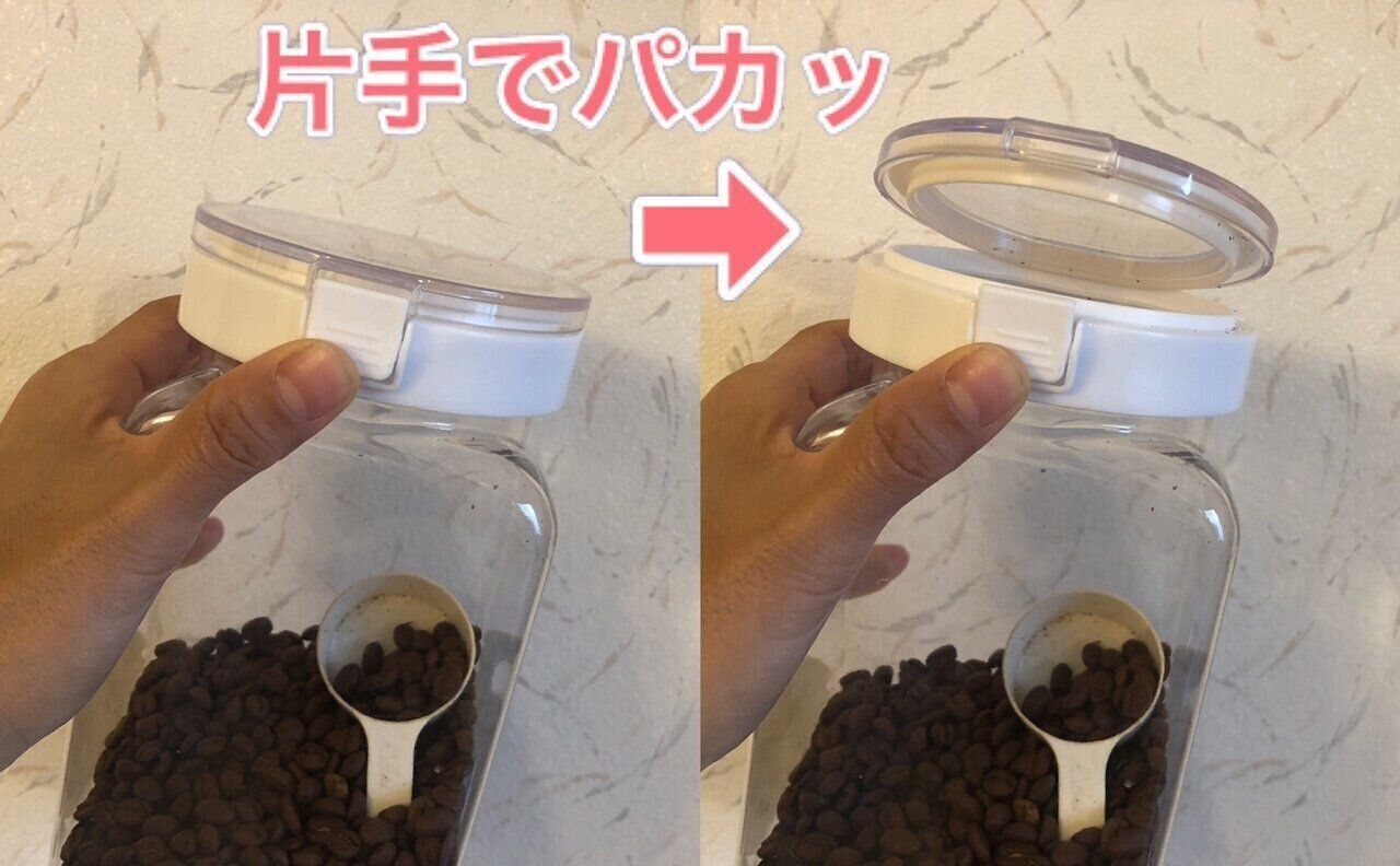 保存容器は、両手を使って開けることが多いと思いますが、こちらは片手で開けられます。しかも、ポチっとワンプッシュ!