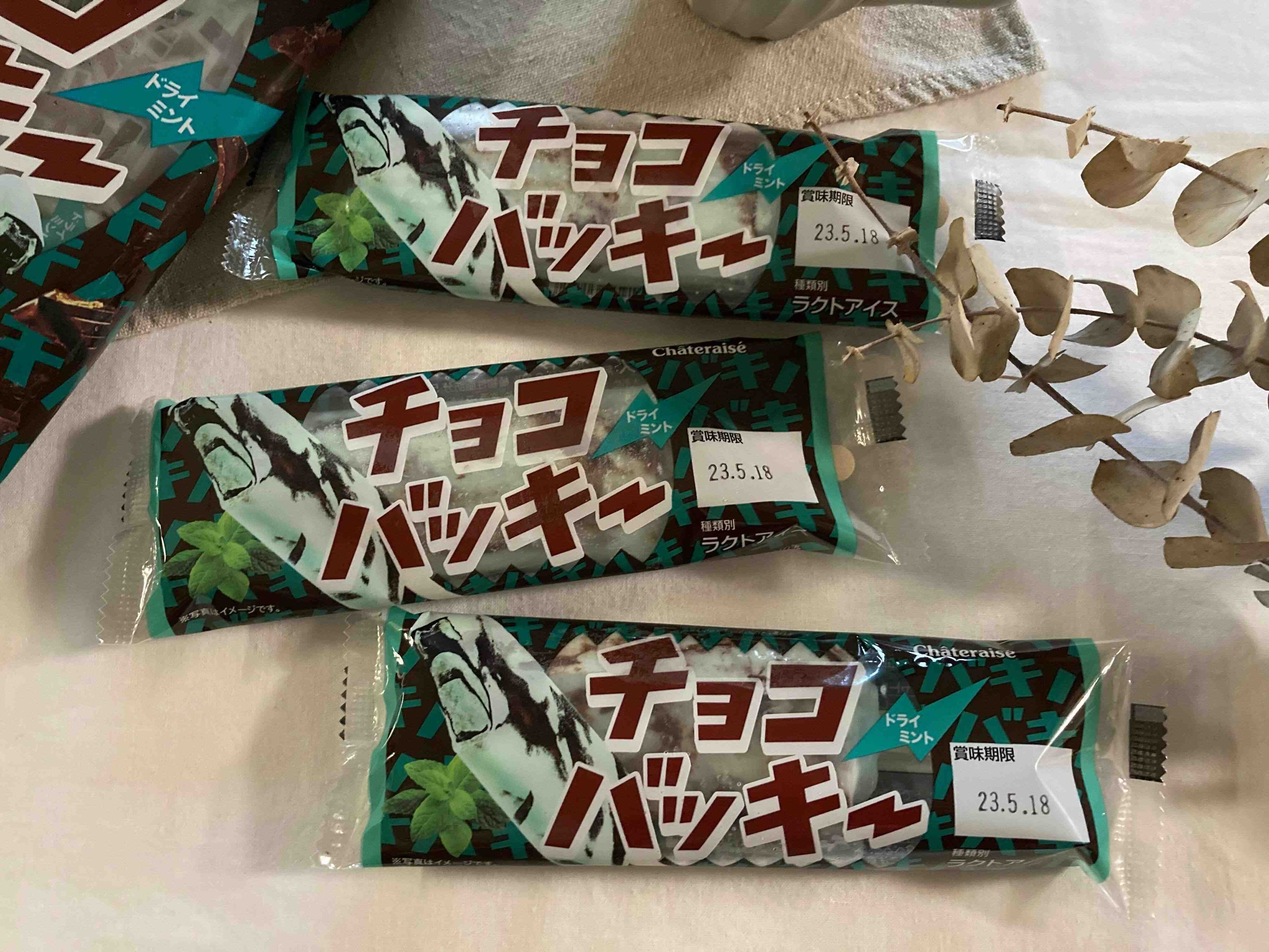 大人気アイスの「チョコバッキー」シリーズの「ドライミント」は、毎年発売されると即売り切れてしまうこともある、大人気商品なんです。なので5月21日の発売に合わせて、すぐに購入してきました。