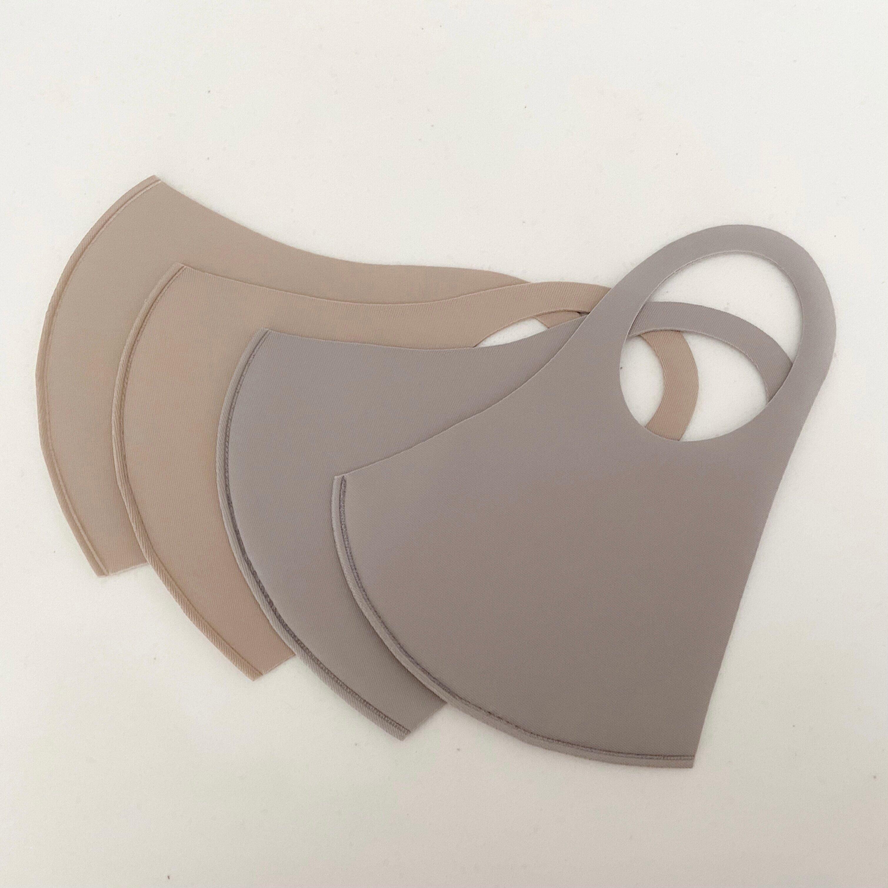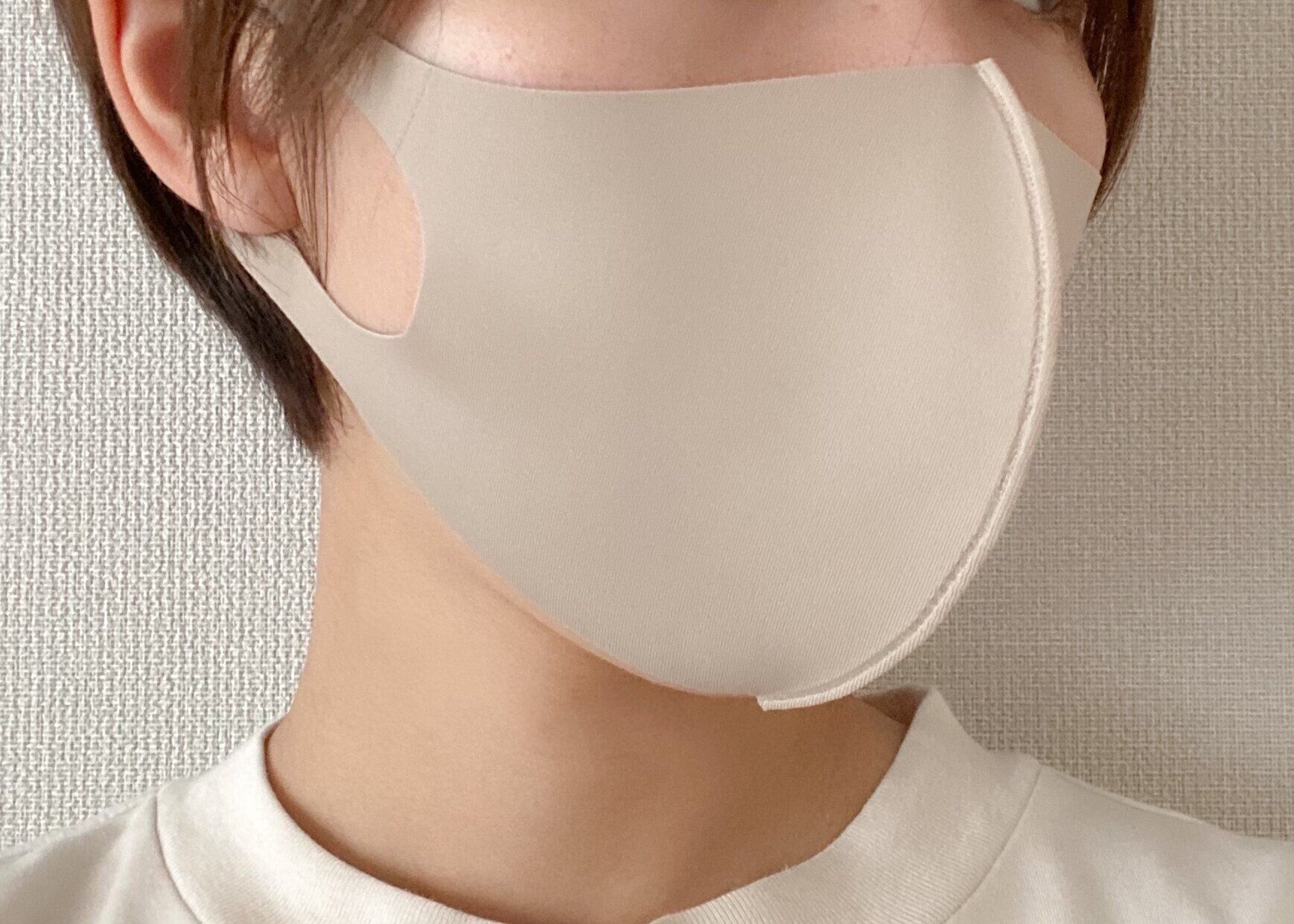 接触冷感度-3℃の「冷感 洗えるマスク」。生地は薄くつるっとしていて、触るだけでひんやりしているのが分かります。実際につけてみると、確かに冷たい!!
