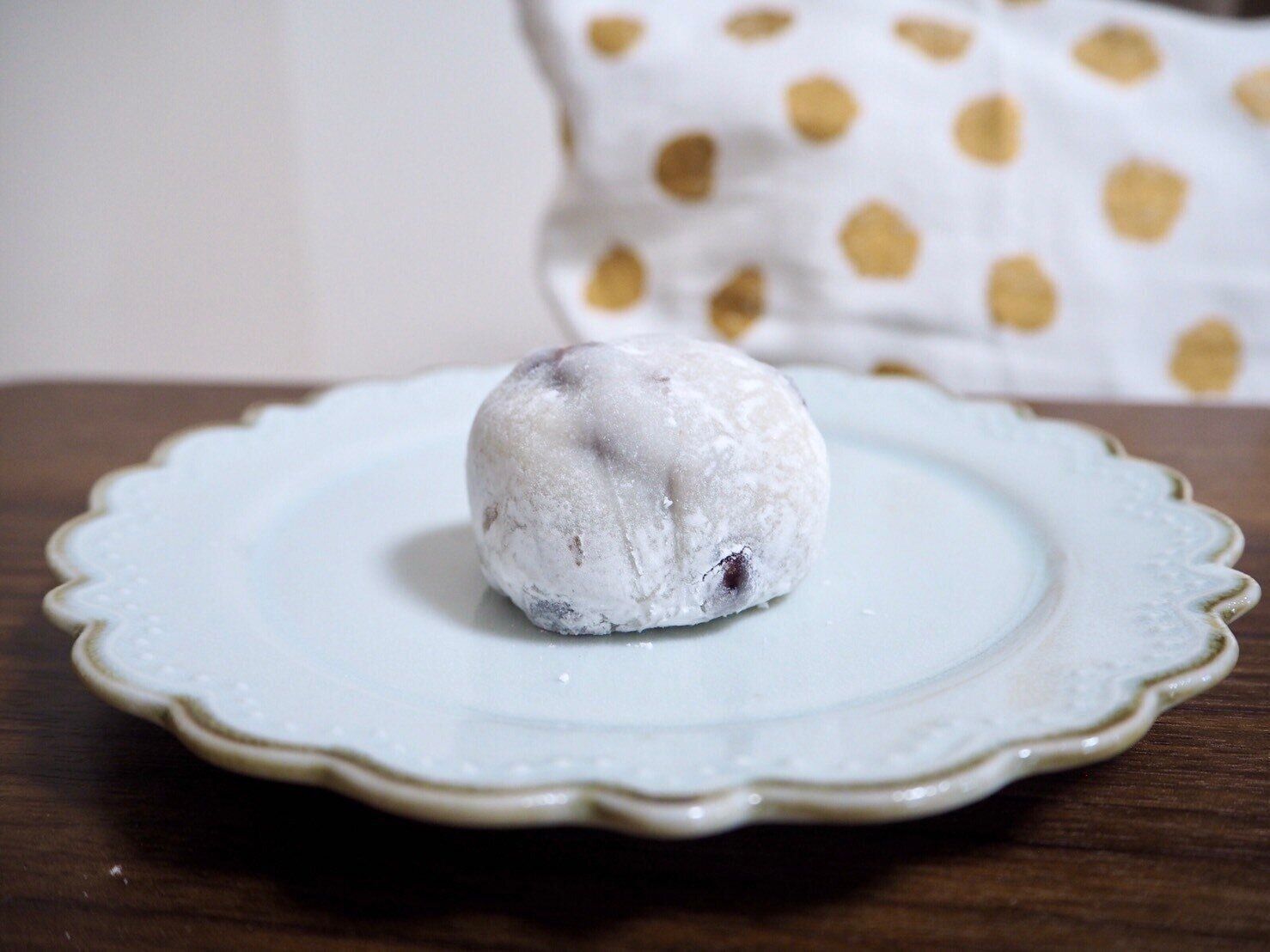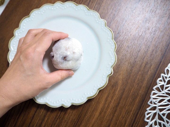 真っ白な大福の表面から、ぼこっと黒い豆が浮いている姿は食欲をそそります。