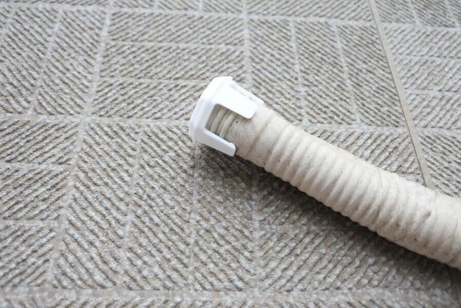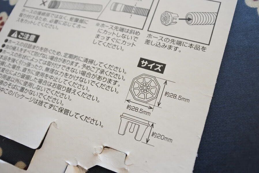 取りつけ方法はすごく簡単!(ホースの蛇腹部に取りつけるようになっているのでホースをカットする必要がある場合があります。)