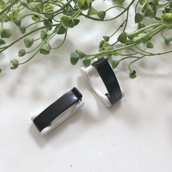開いた状態ではものを引っかけたり、閉じた状態ではものを固定することができる優れもの。