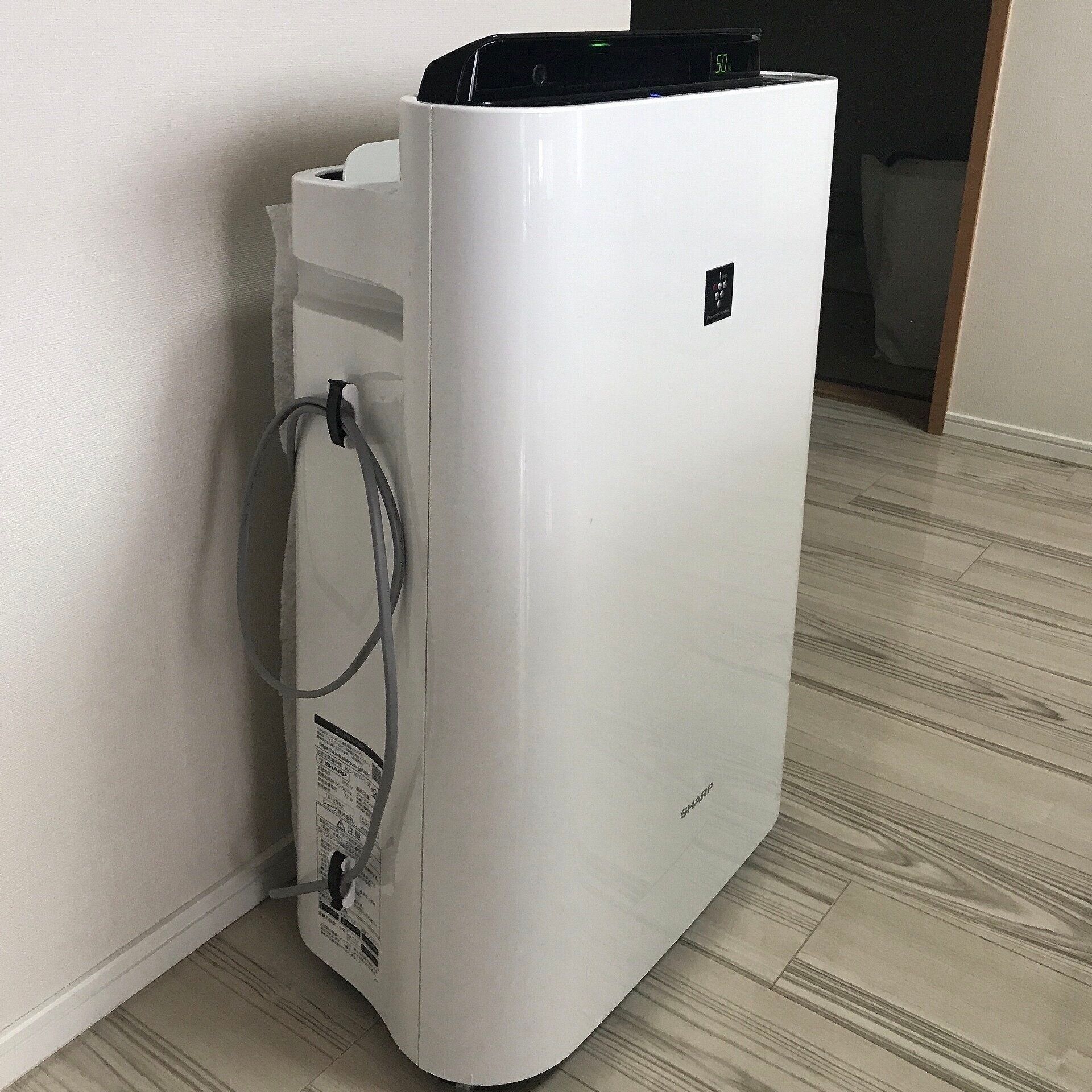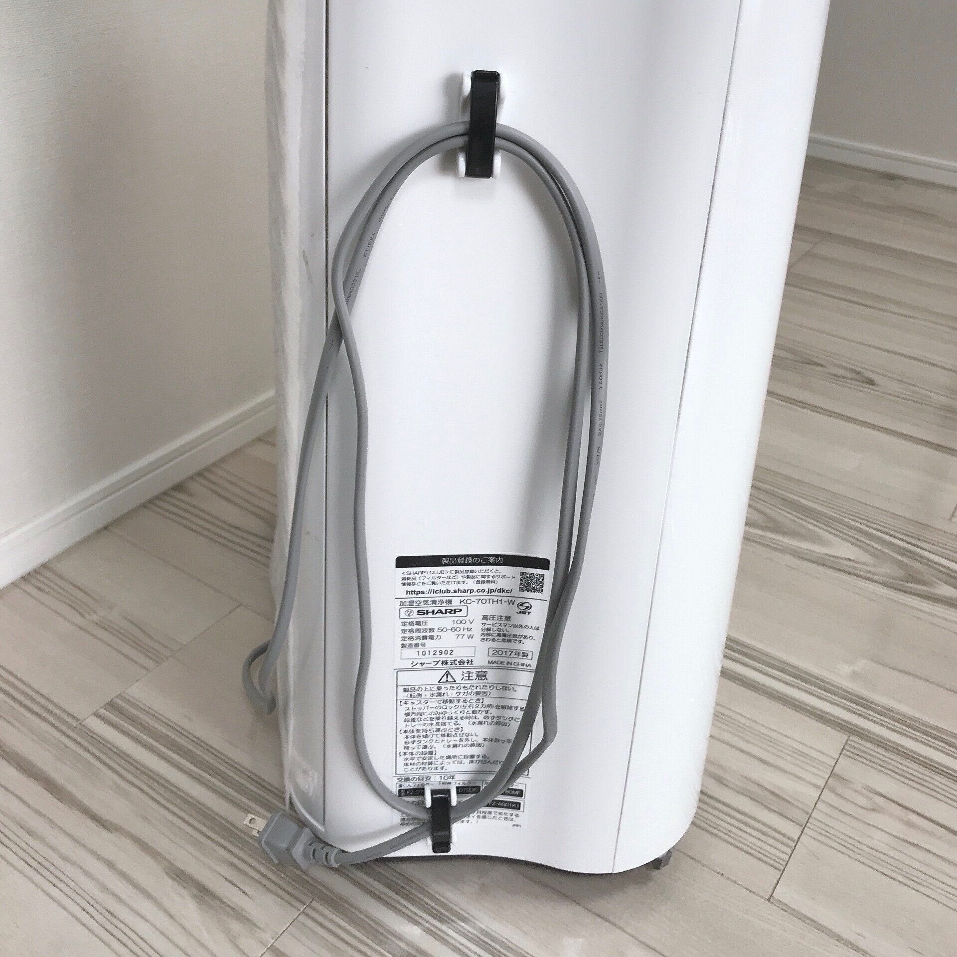 使用中の電化製品もフックにコードをかけておくだけで、床の上がゴチャゴチャしないのでスッキリ。