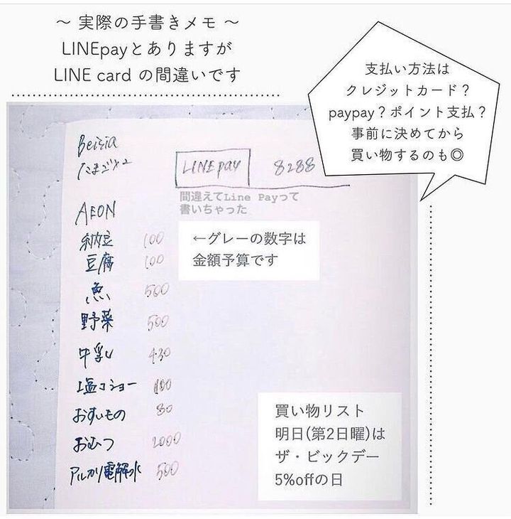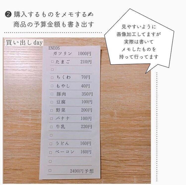 買い物をしているとメモを持ちながら、カートを押している主婦のかたをよく見かけますが、余計なものを買わないため、そして買いたいものを忘れないためにメモを持っていくのは基本ですね。