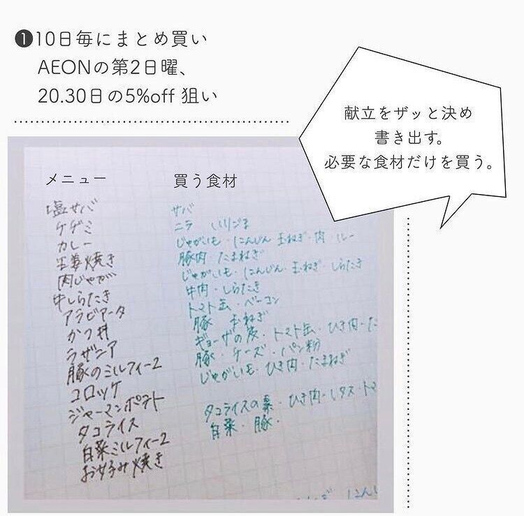 こうすることによって、使いたい食材だけを買うことができるので、食品ロスになることもなく、同時に1週間分の献立も決められて「ムダ買い」なし!