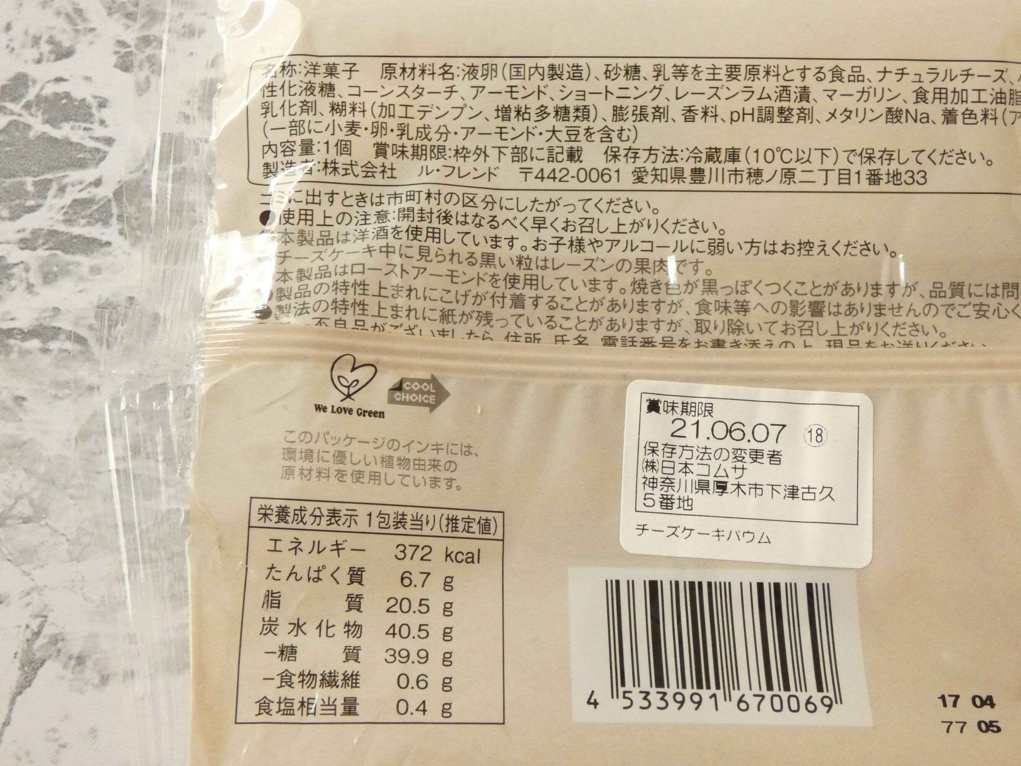 ファミリーマートで新発売スイーツをチェックしていると、HP未掲載のスイーツを発見!!チーズケーキとバウムの組み合わせが美味しそうで、思わず手に取りました。
