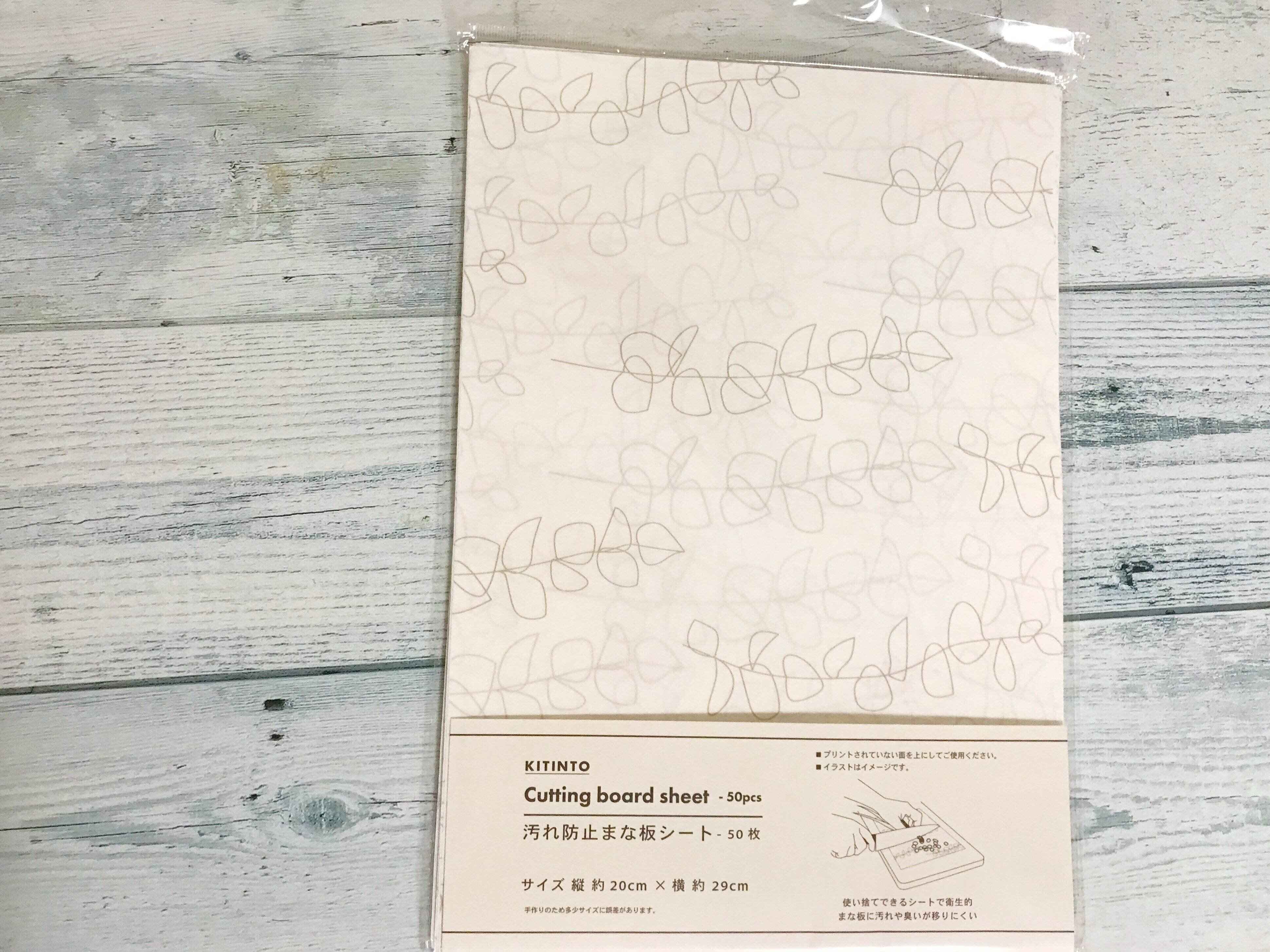 3COINSで販売されているKITINTO「汚れ防止まな板シート・50枚」(330円)は毎日の洗い物がちょっぴり楽できるおすすめの使い捨てタイプのアイテム。