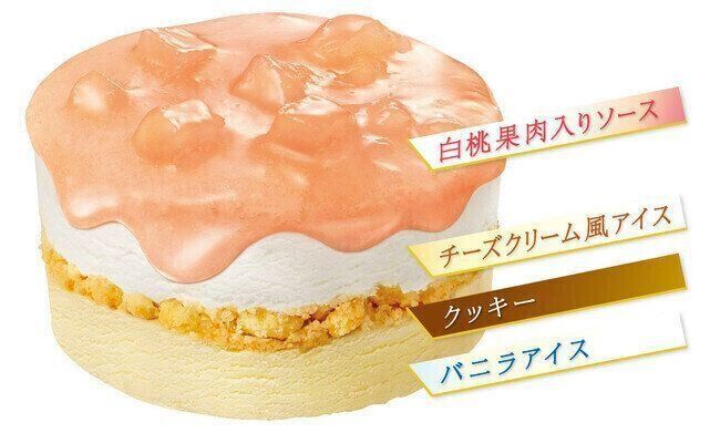 2種類のアイスの間には、タルトの様なしっとり食感が楽しいクッキーをちりばめ、暑い夏にも食べたくなる専門店の「白桃のタルト」の味わいを表現しました。