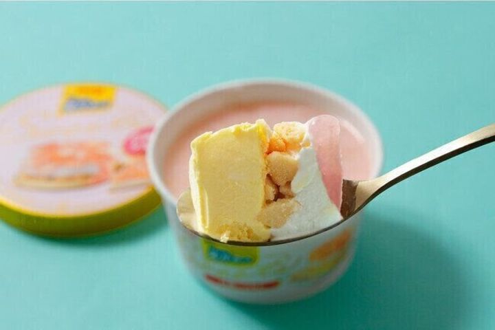 1層目の、卵黄を使用したコクのある「バニラアイス」が全体に深みを加え、さらにクセのないミルキーな旨味を感じる「チーズクリーム風アイス」が、全体の味わいを引き締めます。