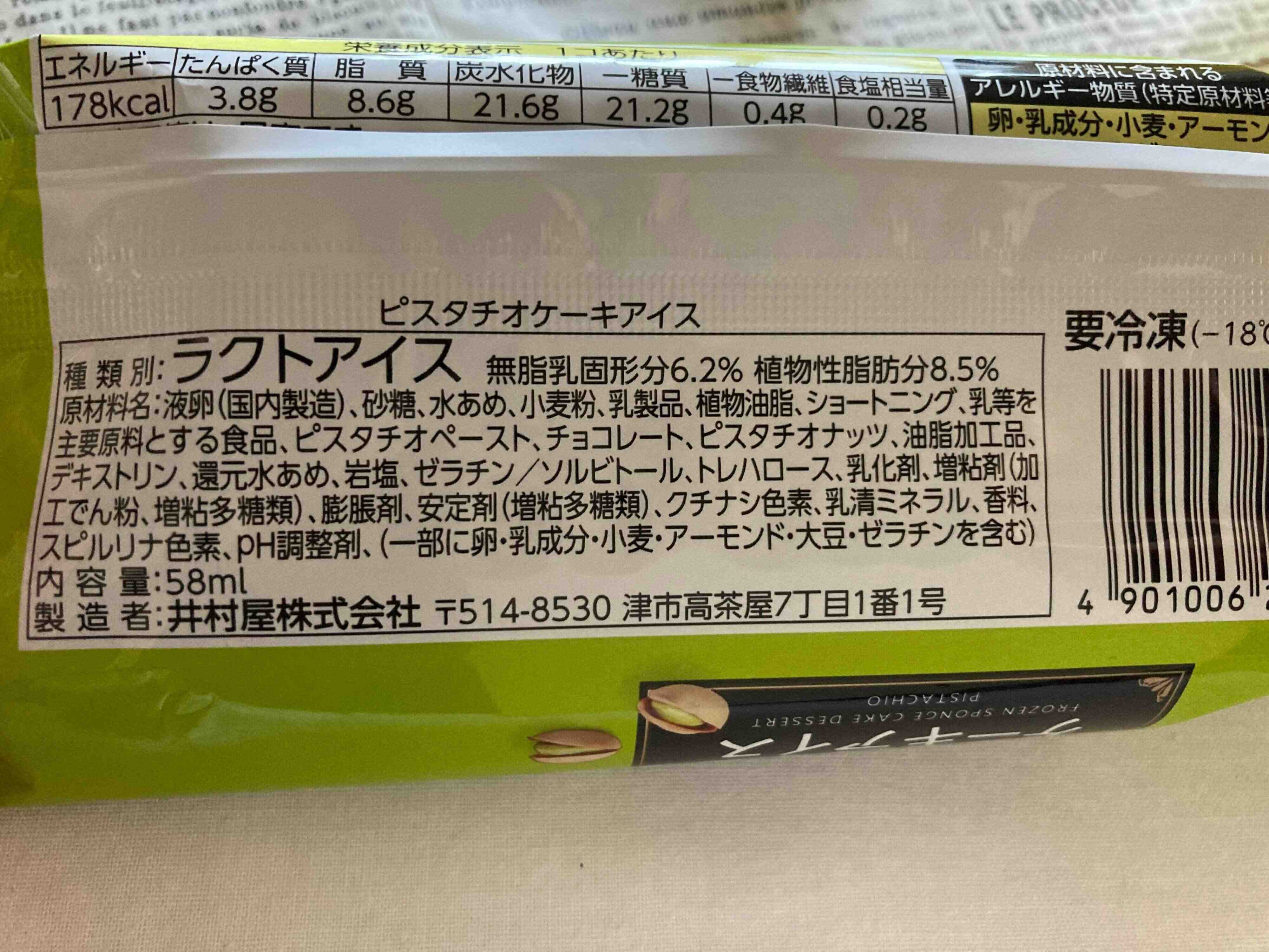今回ご紹介する商品は、ローソンのウチカフェシリーズの新作「ピスタチオケーキアイス」です。価格は1個198円(税込)。
