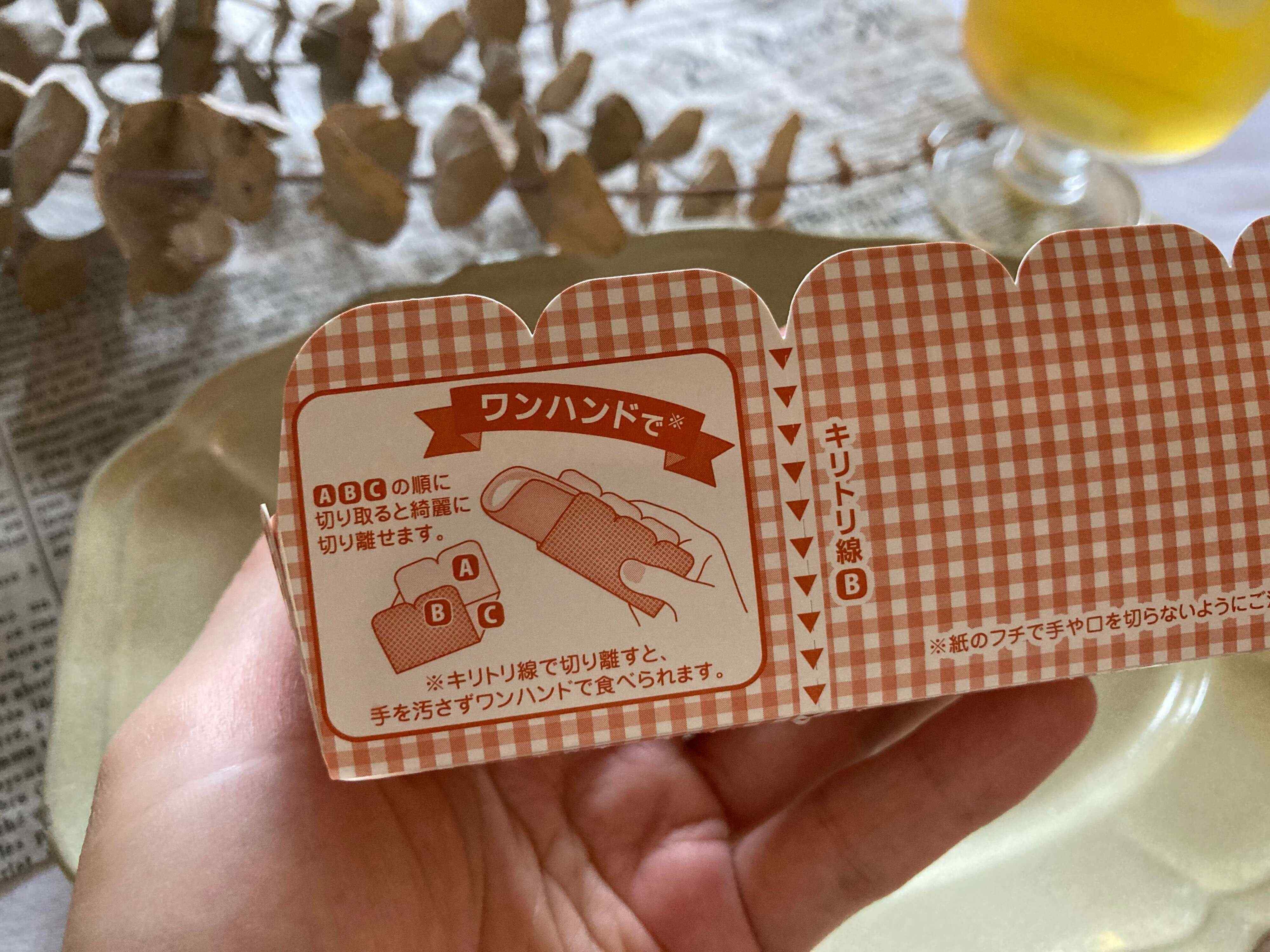 こんな感じで、手を汚さずワンハンドで食べられるのです。これならどこでも手軽に食べられるので嬉しいですね。