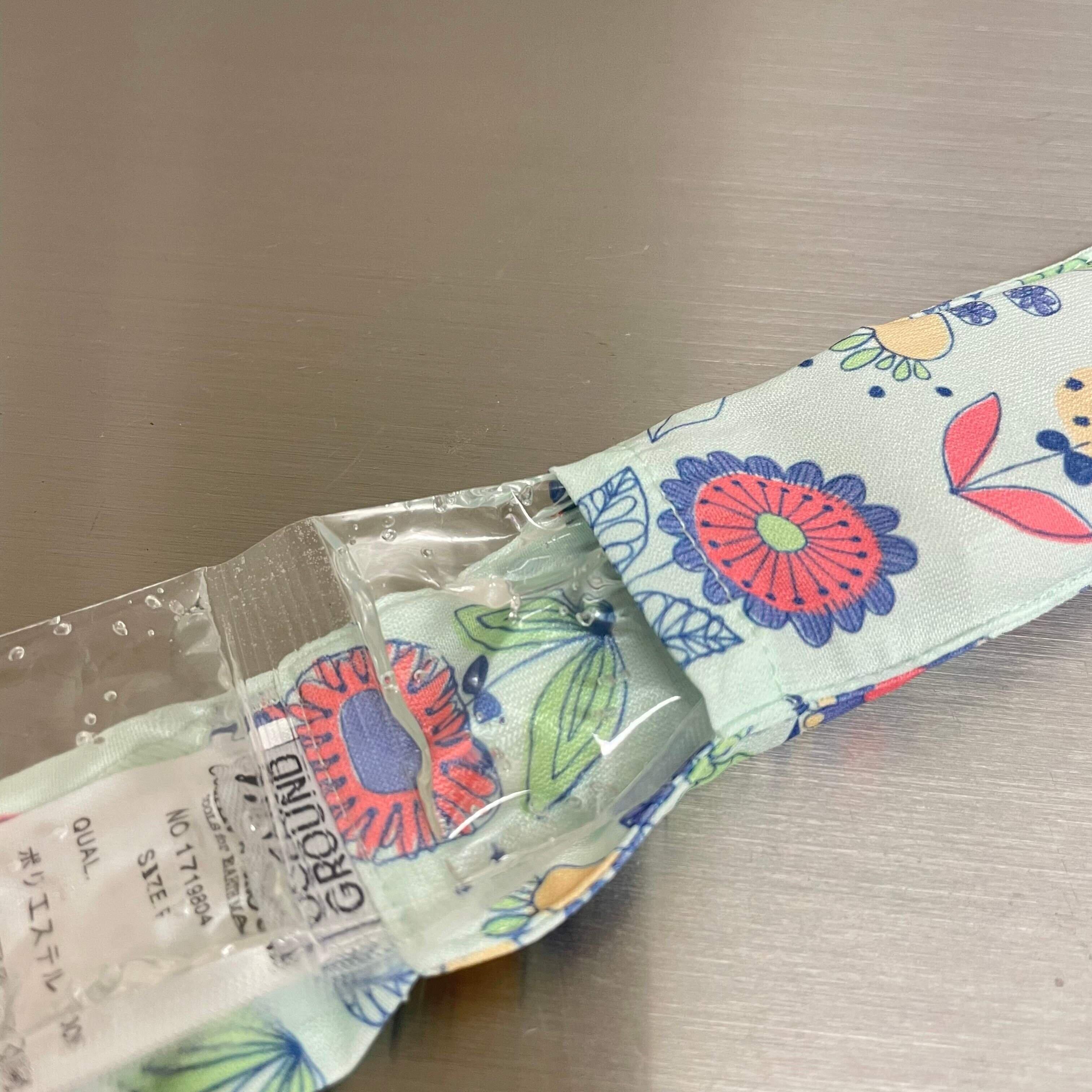 保冷剤は固くならないジェル状なので、首が痛くならず安心です。