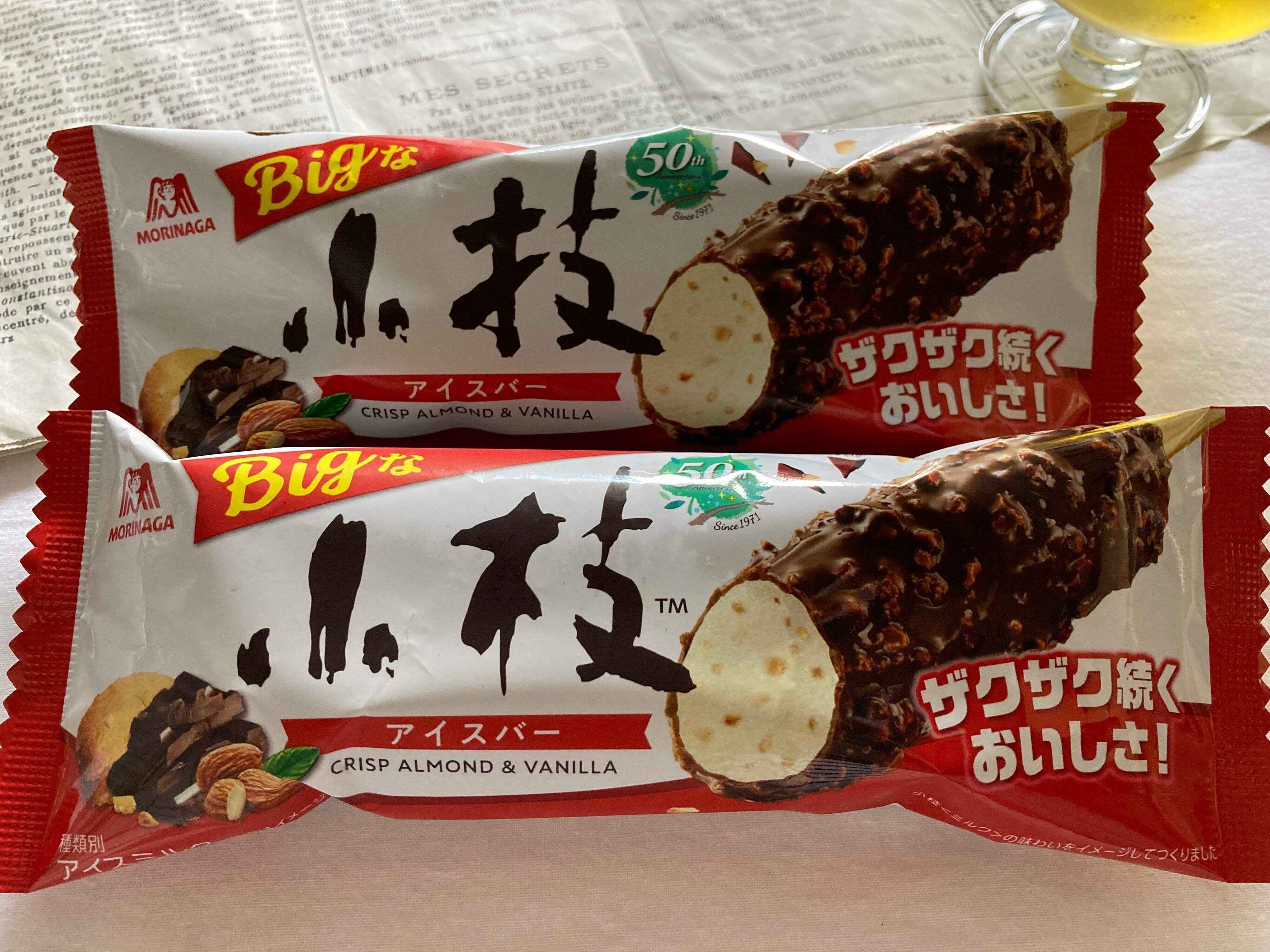 「小枝」は1971年の発売以来多くの人に愛されている森永製菓のロングセラーチョコレート菓子です。50周年記念ということで、「小枝アイスバー」が新しいパッケージで発売されました。