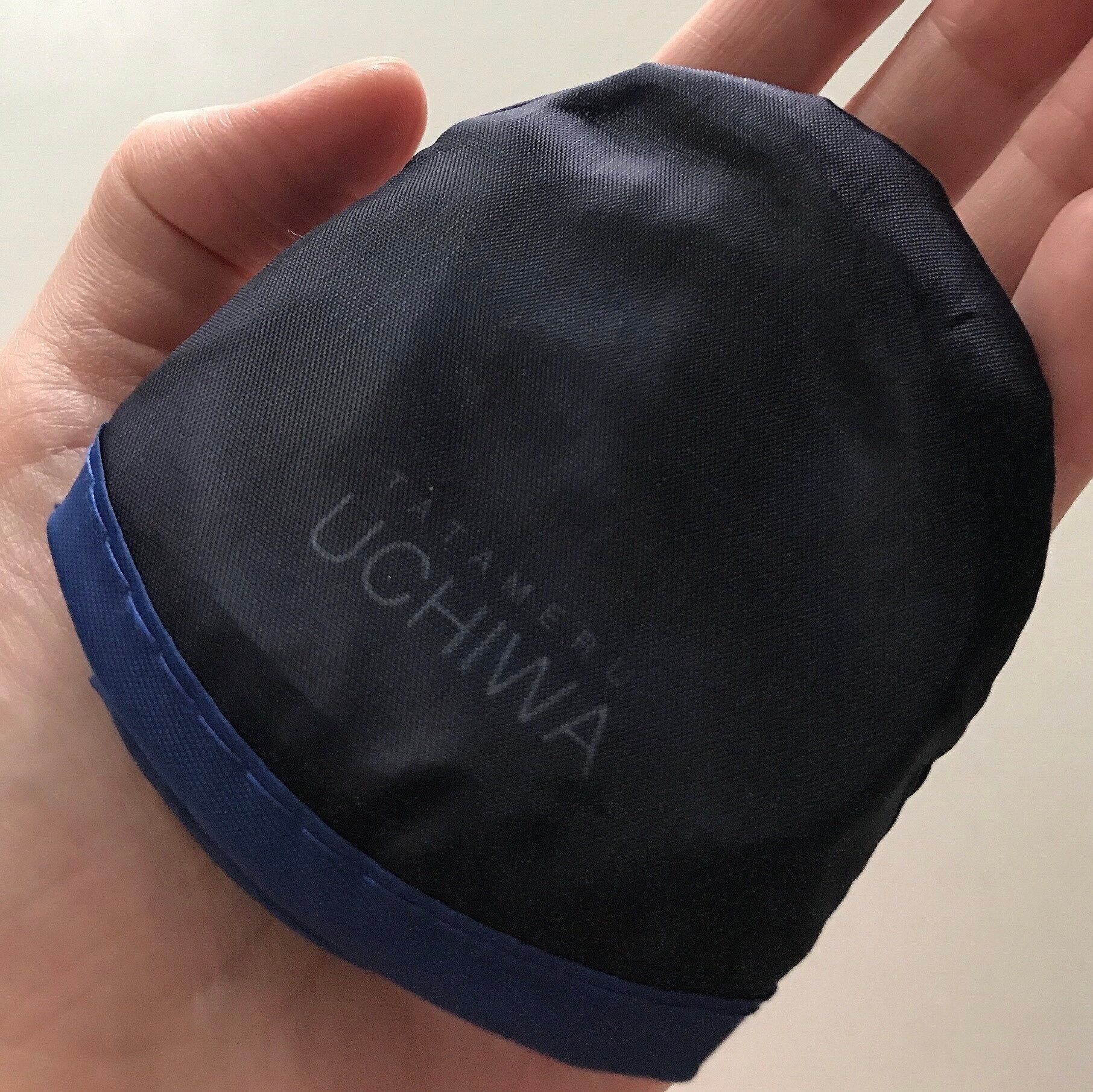 手のひらに乗るコンパクトサイズのうちわ。ケースには「UCHIWA」のロゴが入っています。